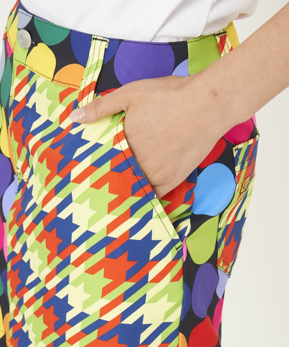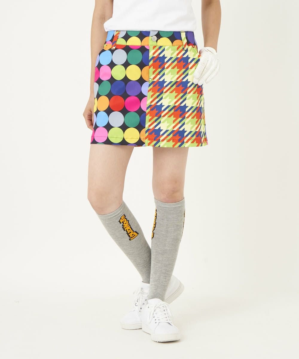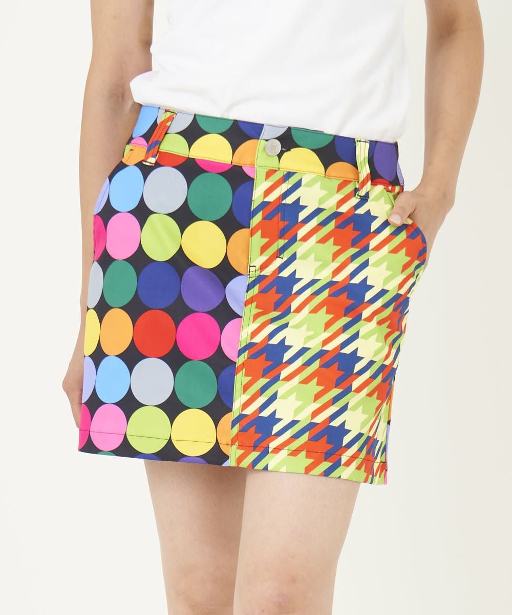 レディース クレイジーパターンインナー付きスカート ディスコボールズブラック