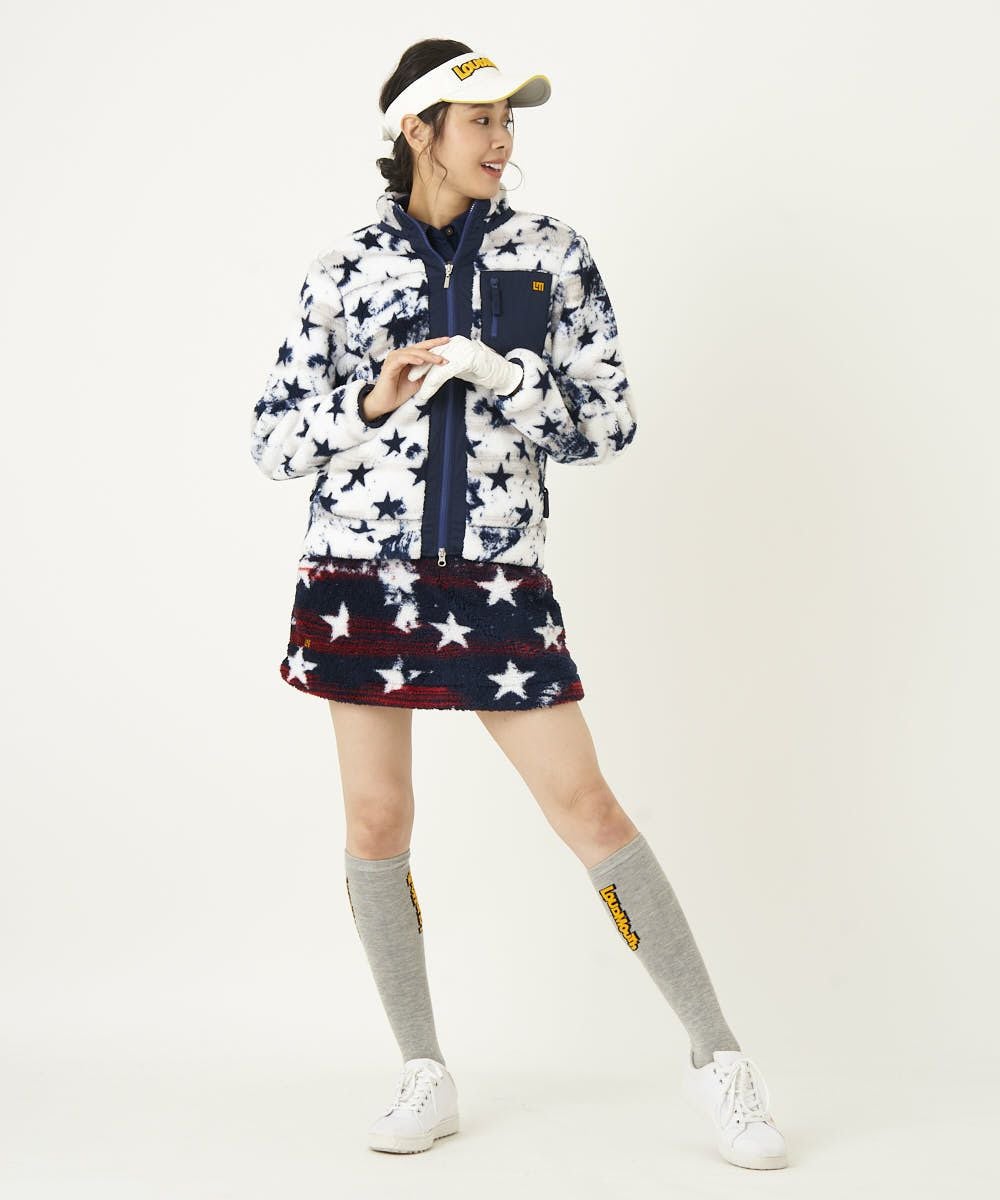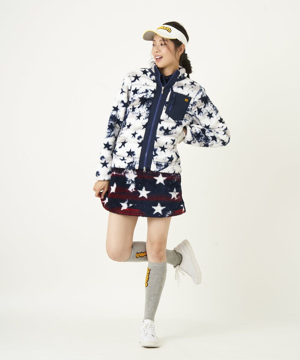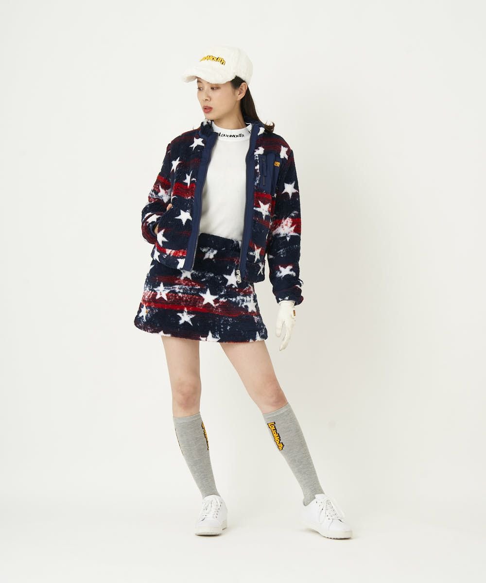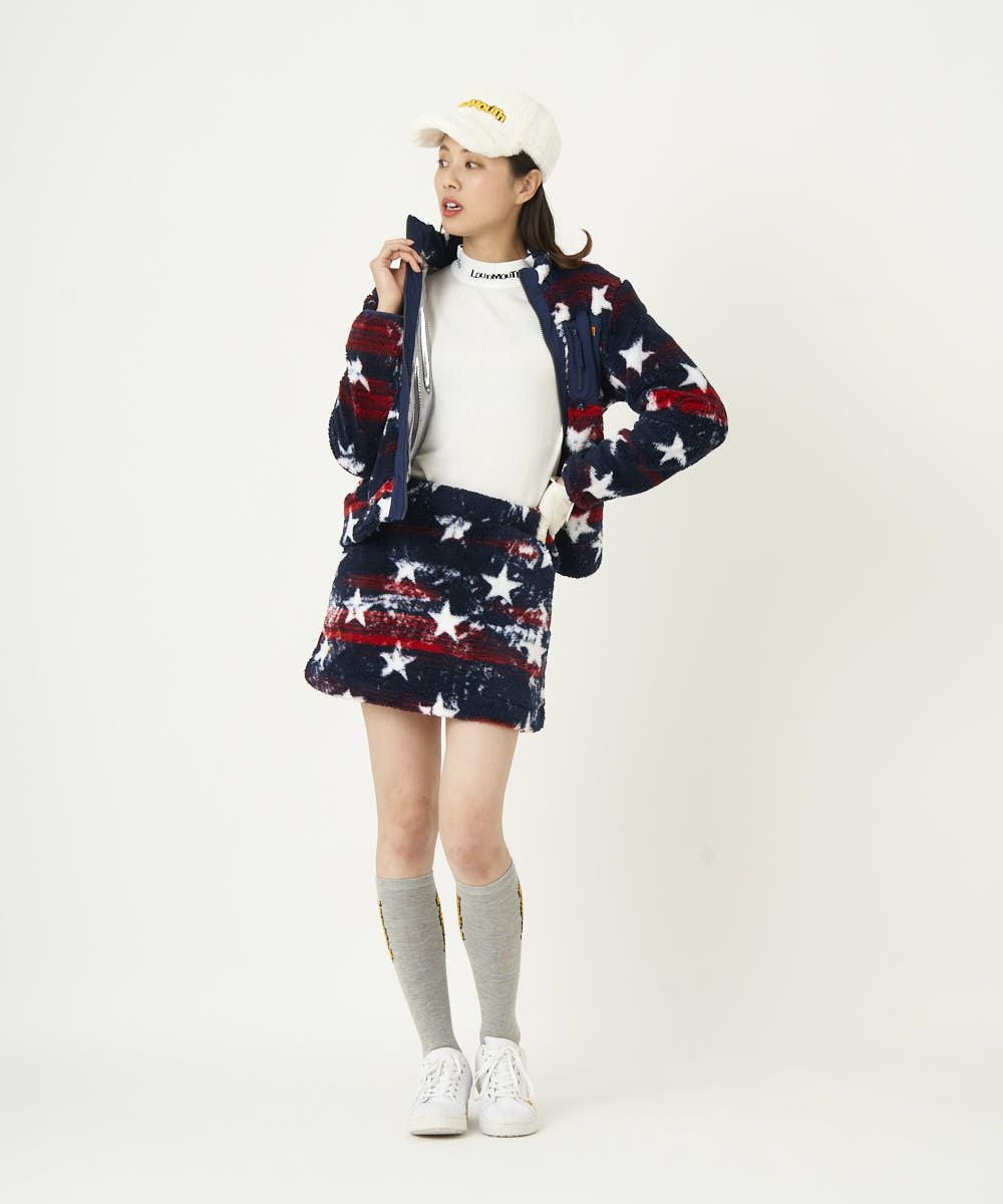 裏フリースボア素材の保温性抜群のスカート。ラウドマウスらしいインパクトのある柄で展開。
