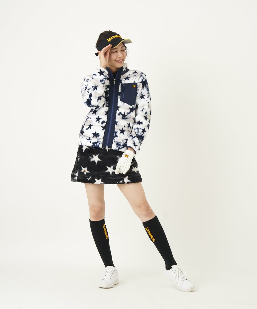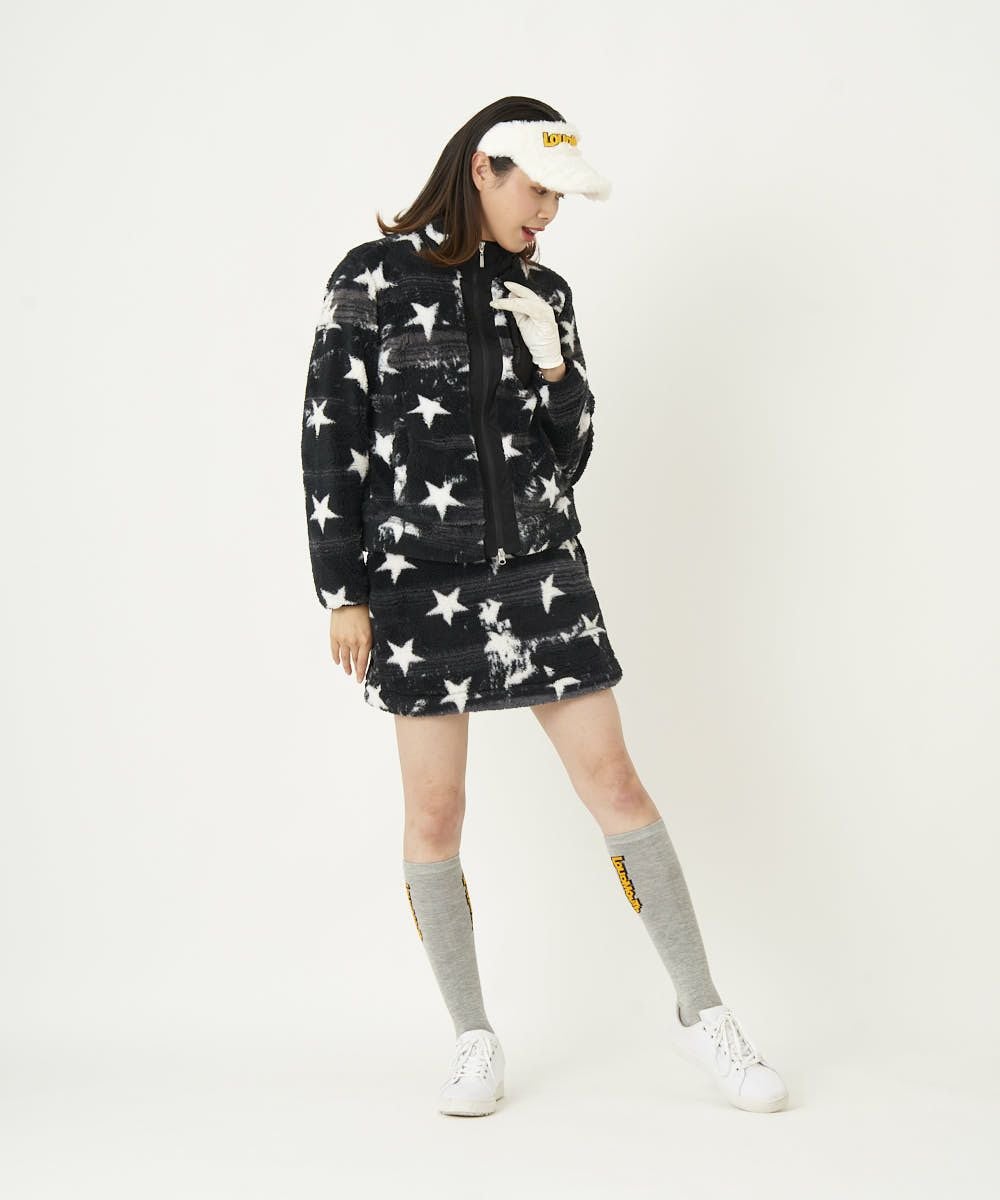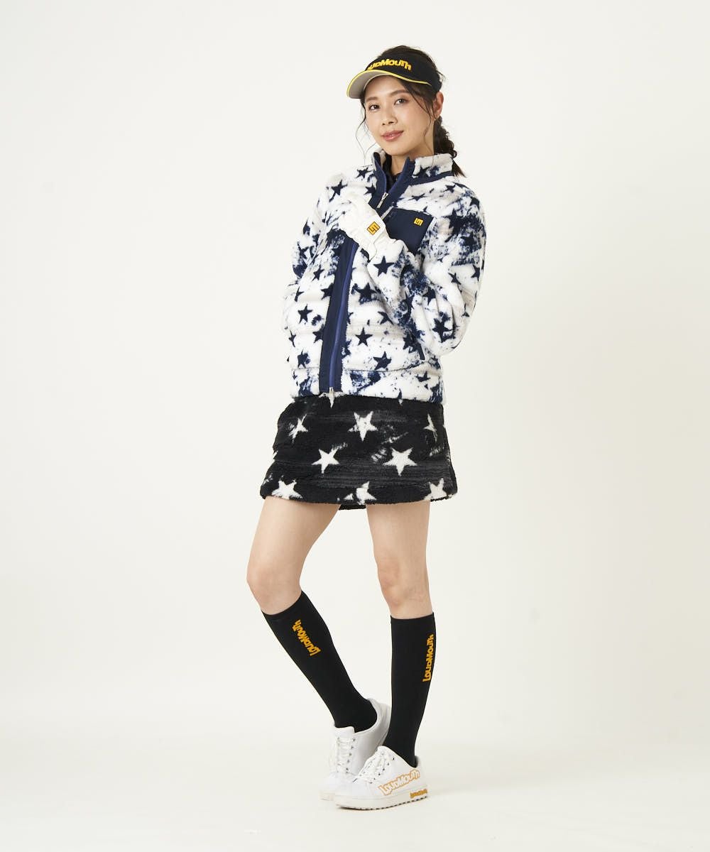 裏フリースボア素材の保温性抜群のスカート。ラウドマウスらしいインパクトのある柄で展開。