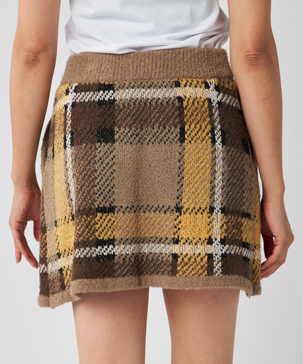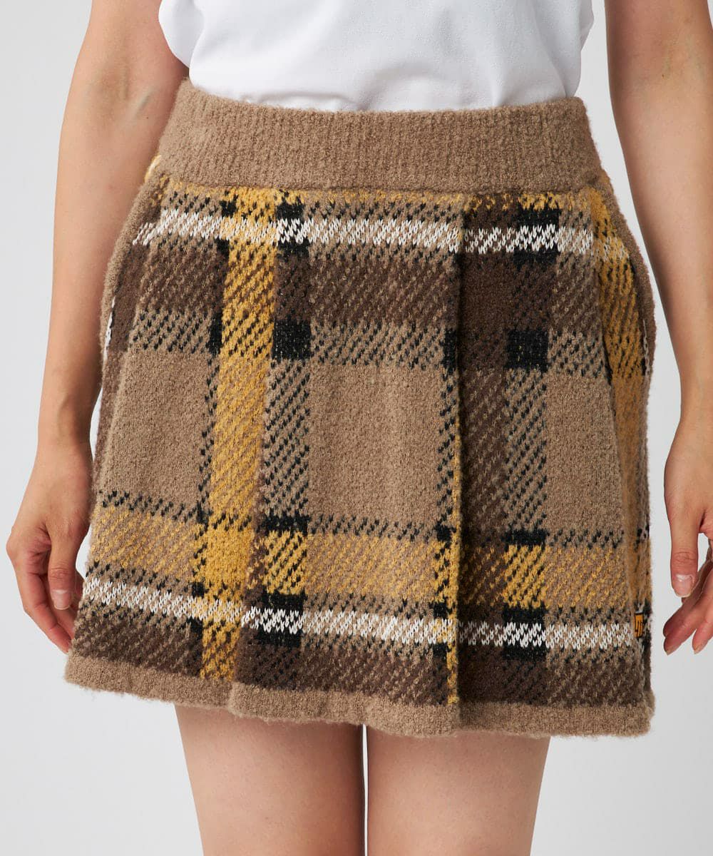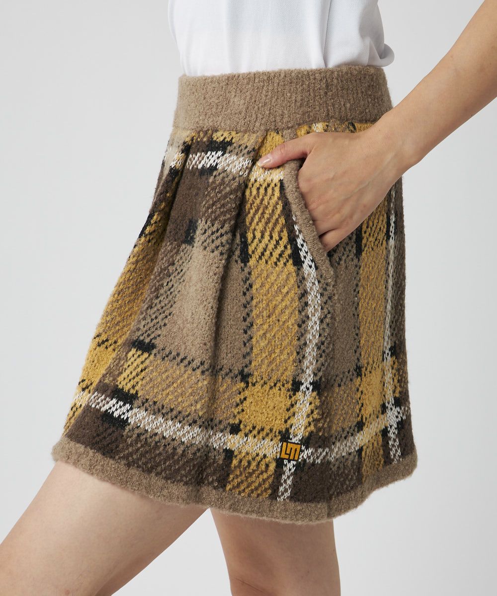 レディース ツイード調蓄熱ニット ニットスカート ブラウン