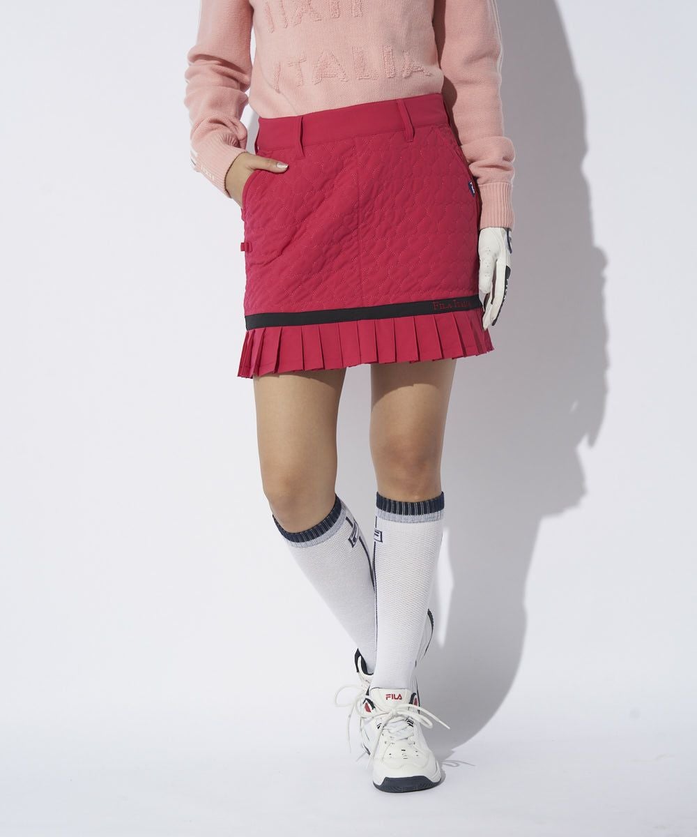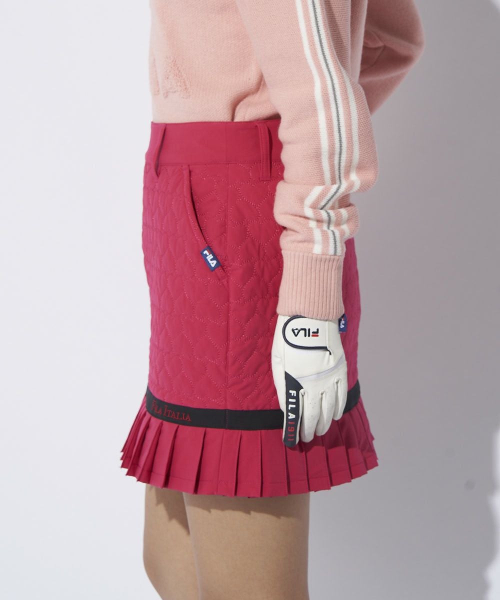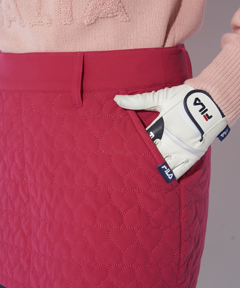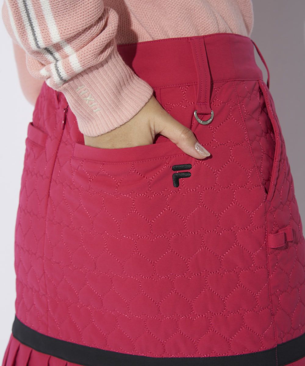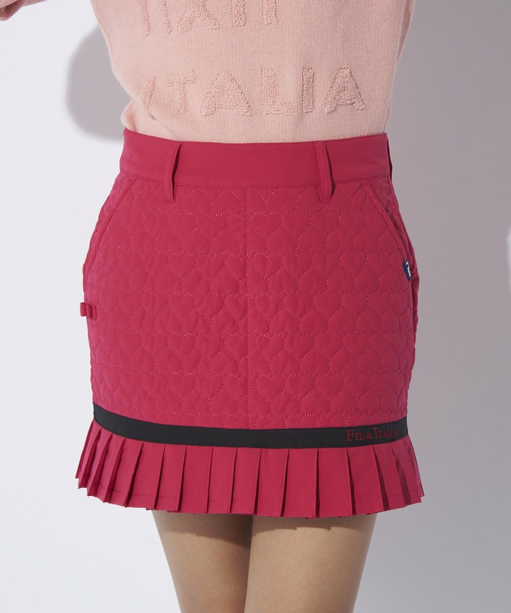 ハートのキルト柄がキュートな中綿入りスカート。裾プリーツ丈を短く設定。甘すぎない大人かわいいデ ザインです。794-261とのセットアップコーデがおすすめ。