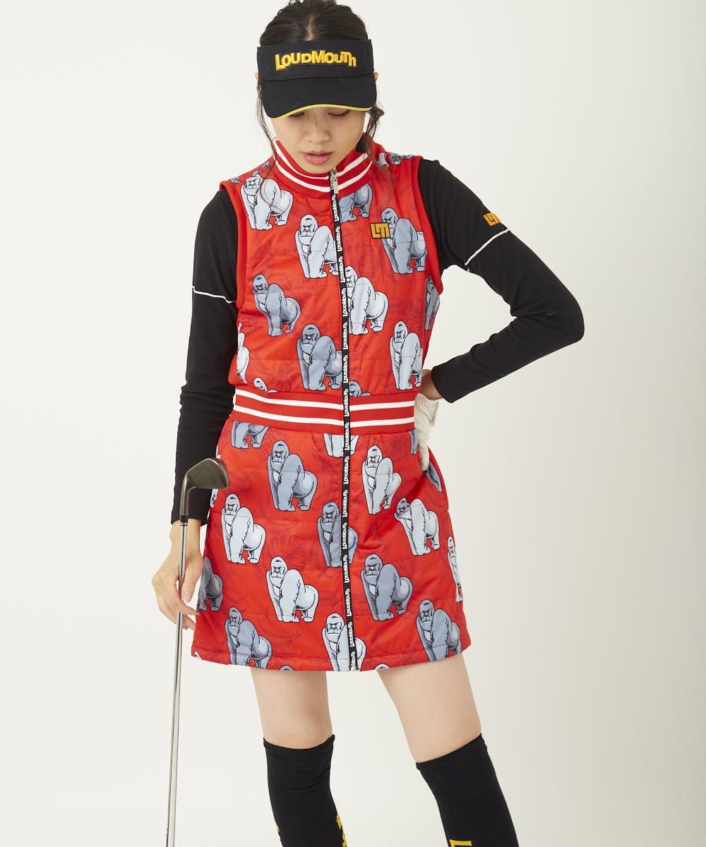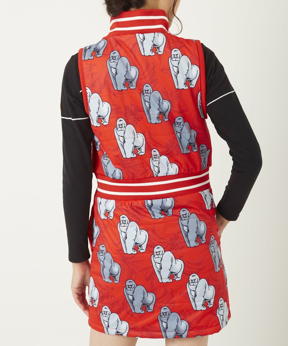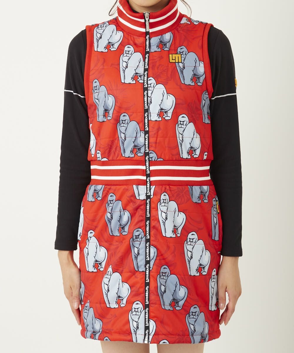 レディース 中綿ベストワンピース ゴリラレッド