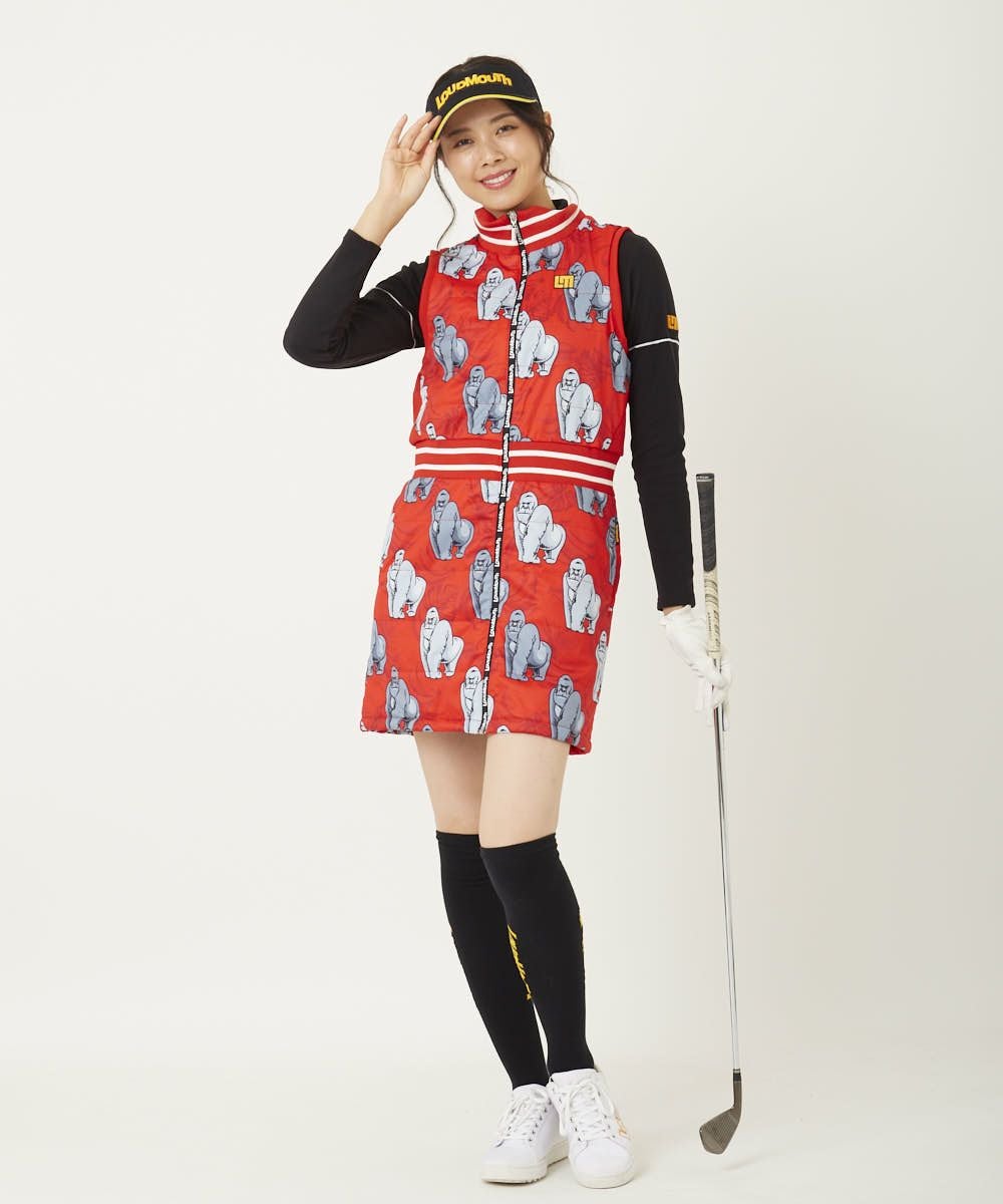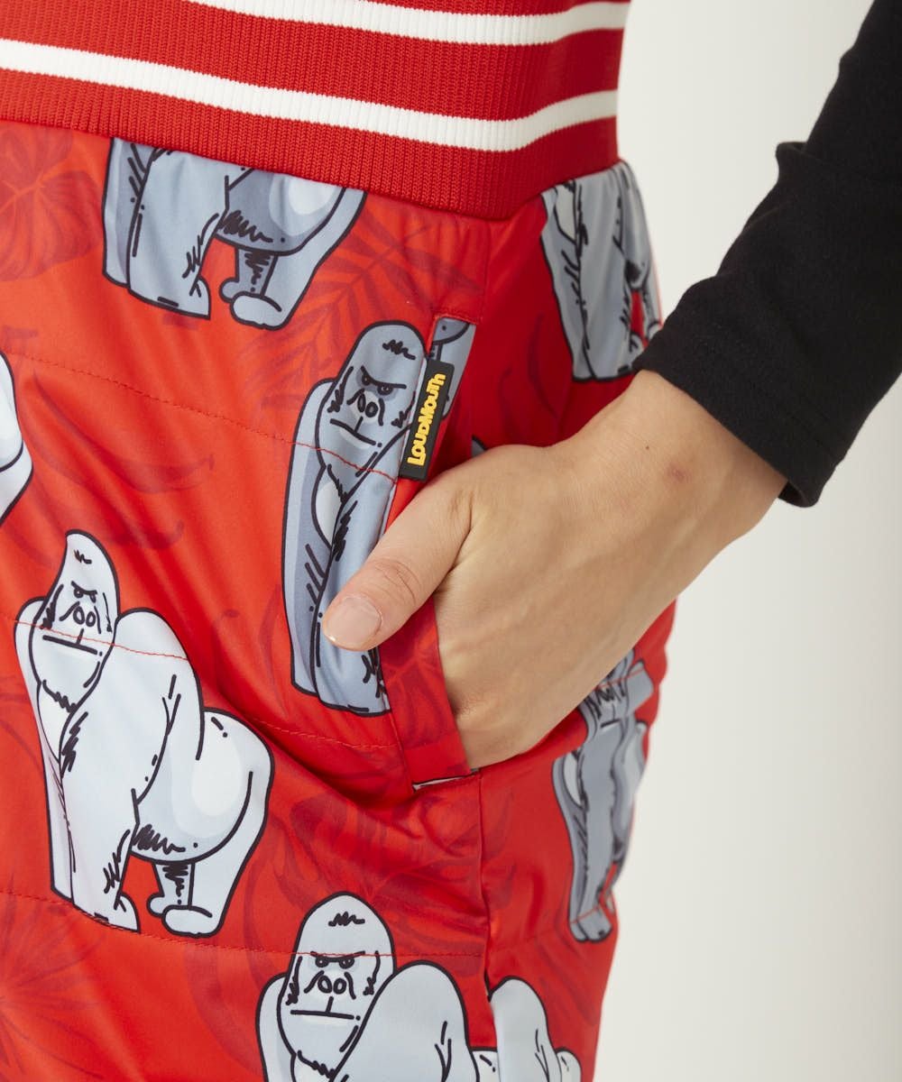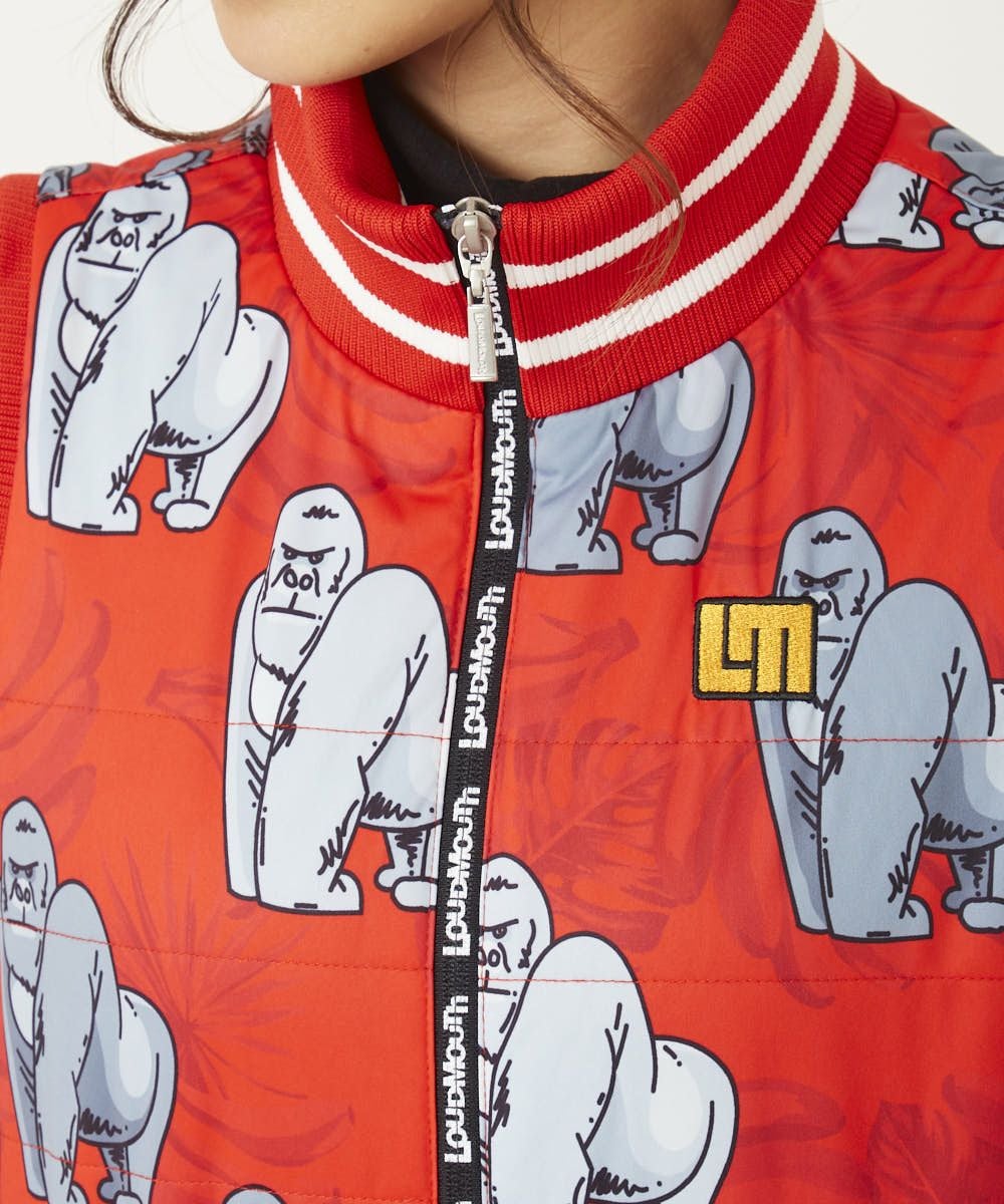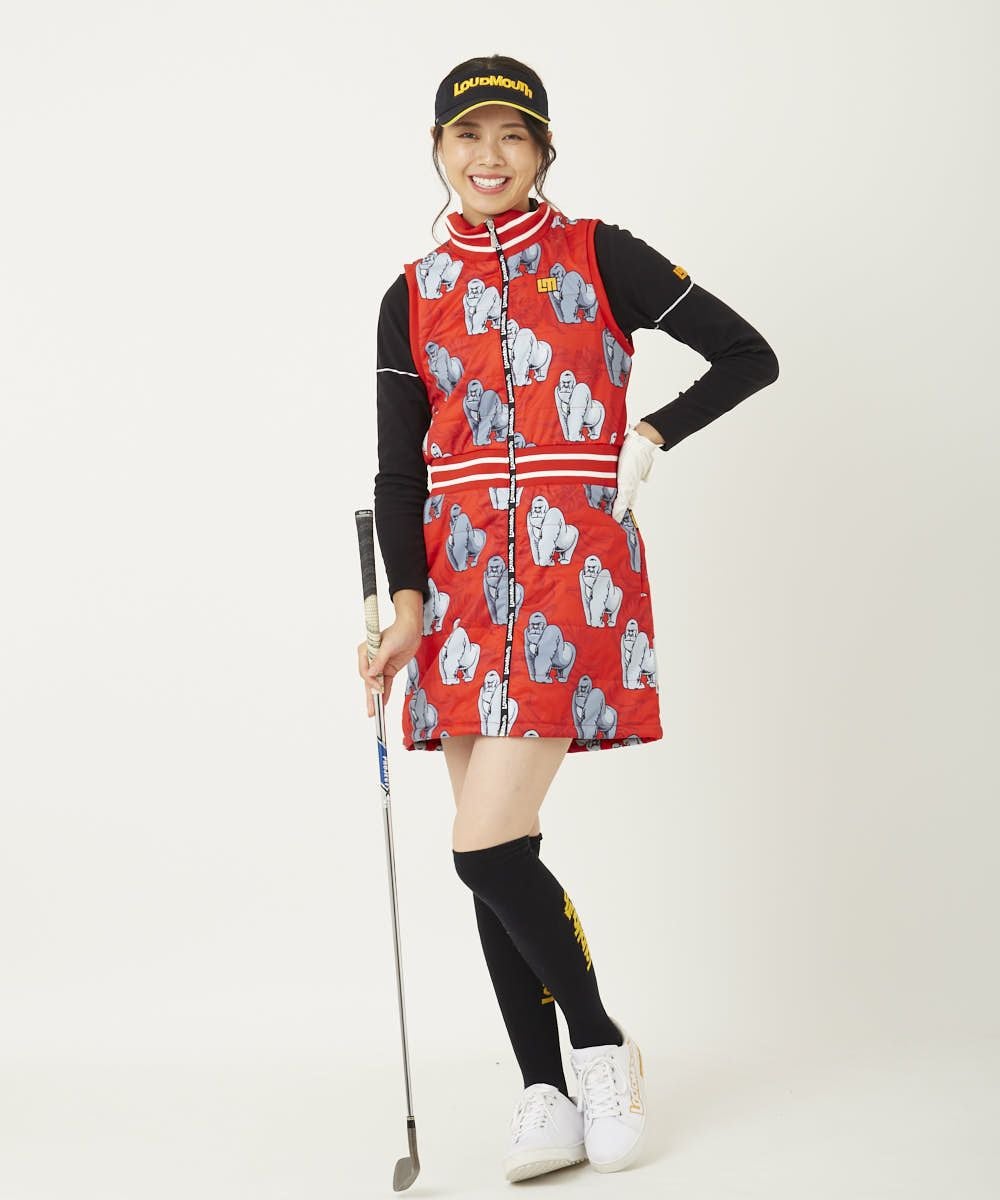 レディース 中綿ベストワンピース ゴリラレッド