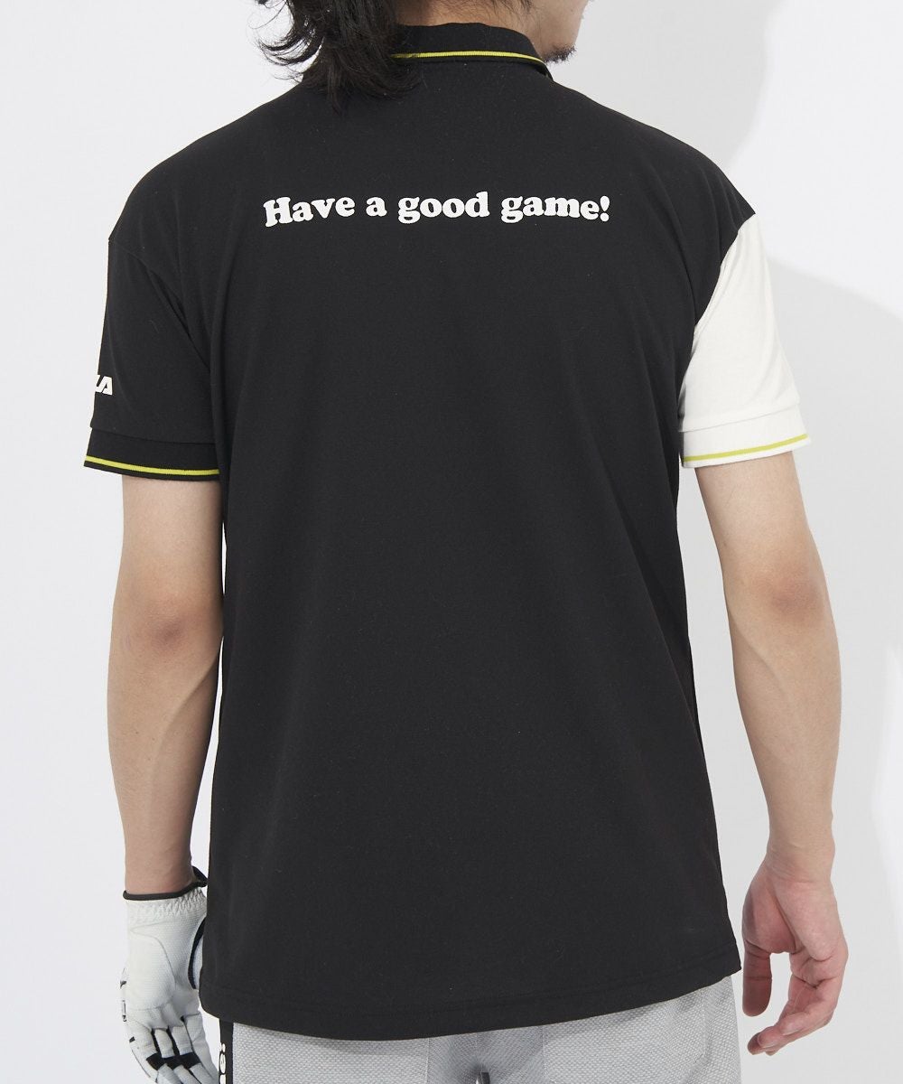 コットンライクのドライミックス素材を使用した着心地の良いポロシャツ。右袖はカラー配色となっており、トレンドのドロップショルダーシルエット。シャツアウトして着用できる様裾にスピンドルを使用しております。