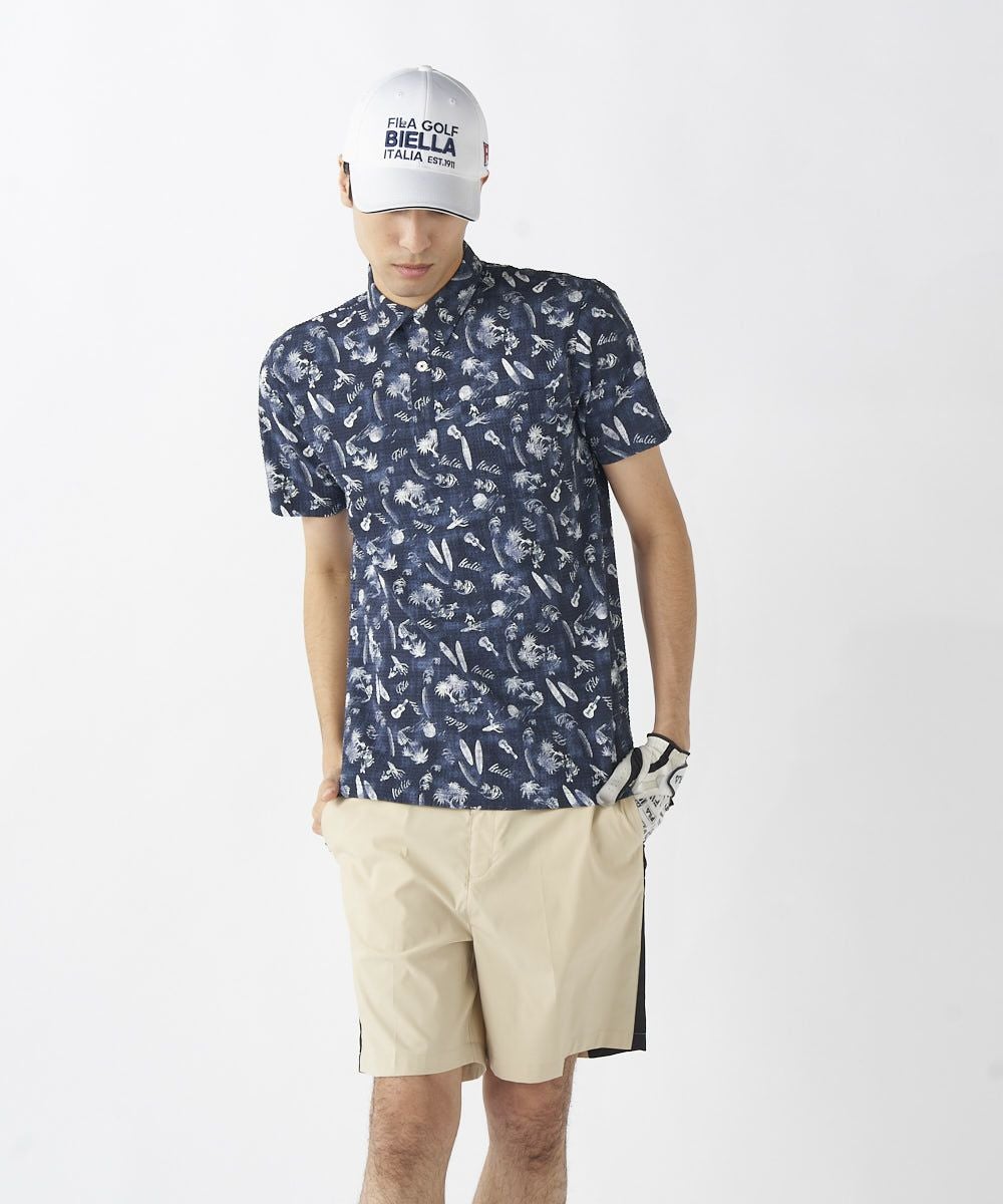 【サラッと夏素材!飛び柄アロハゴルフシャツ】