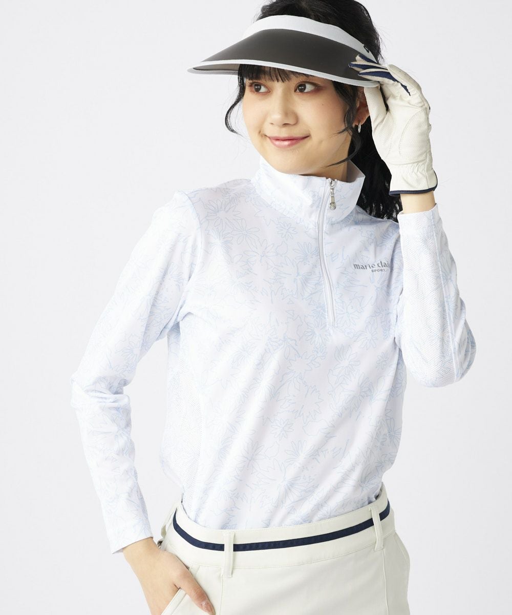 サラッとした肌触りの素材で、袖下・脇には同柄のメッシュ素材を切り替え、汗ばむ季節も快適に着用していただけます。さりげないお花柄が上品な一枚です!