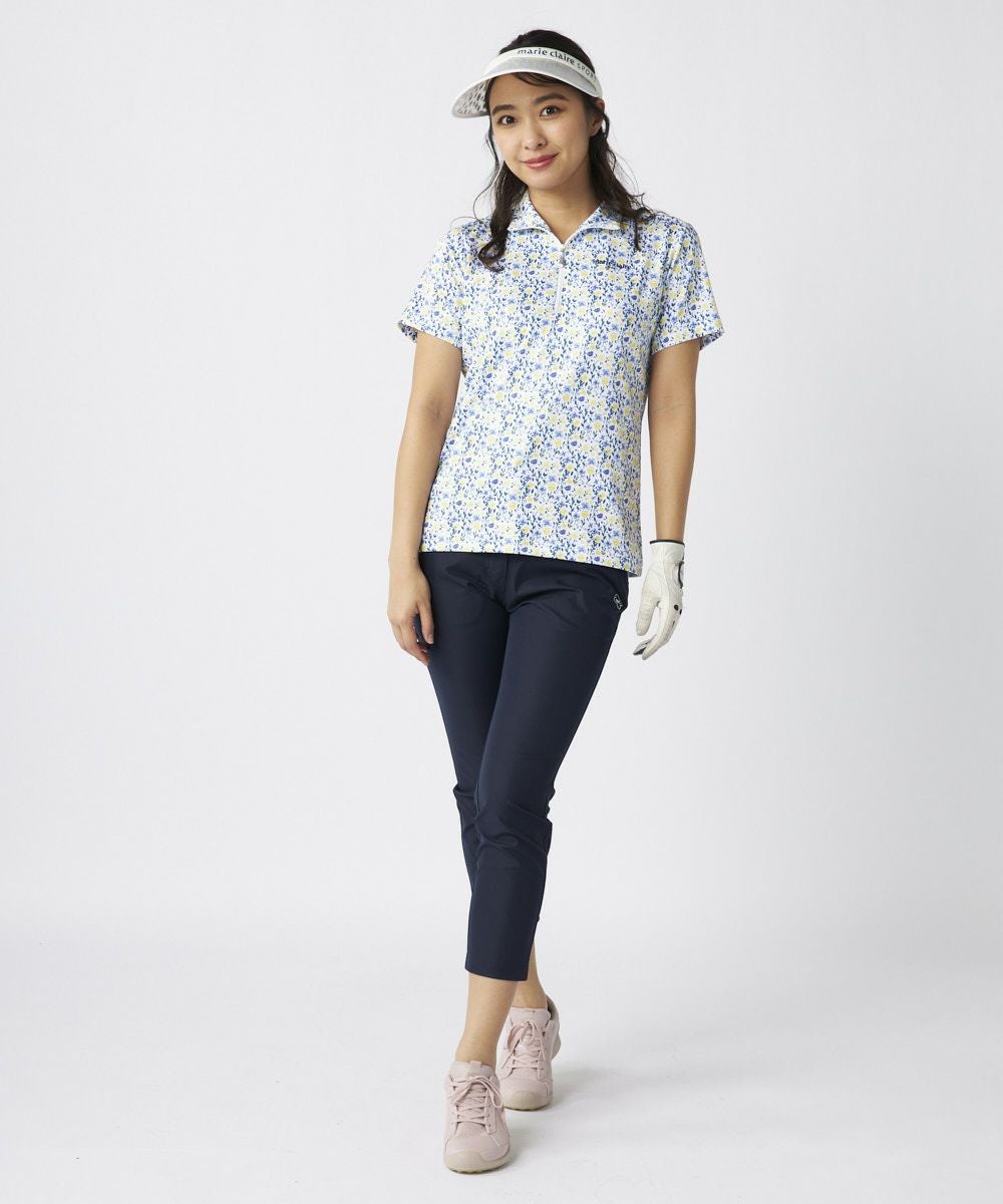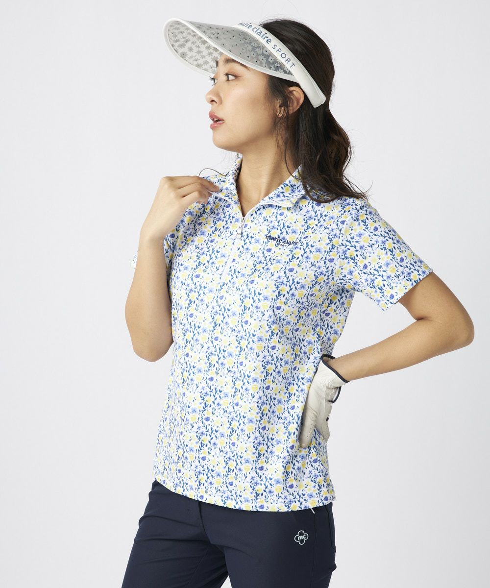 レディース 半袖ハーフジップ花柄シャツ | 吸汗速乾・UVカット・吸湿涼感・接触冷感