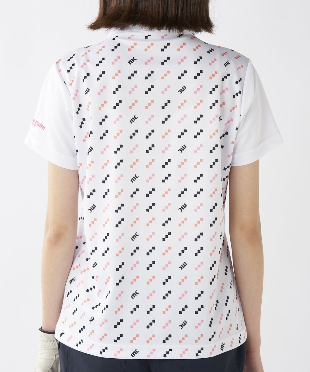 爽やかな印象のカラフルなロゴパターンが全体に散りばめられ、スポーティーかつ洗練された印象のキュートな半袖シャツ。