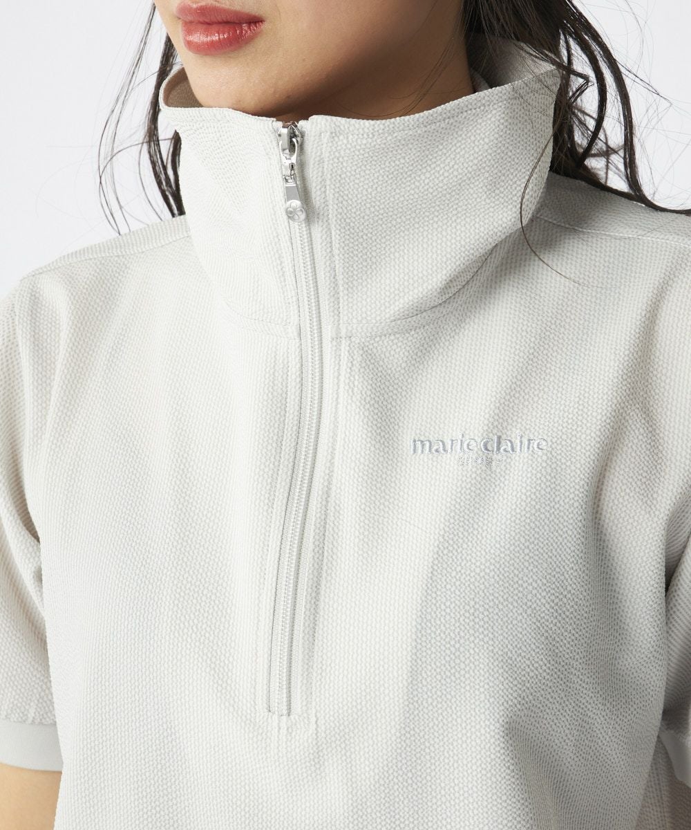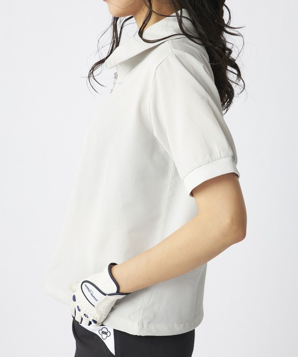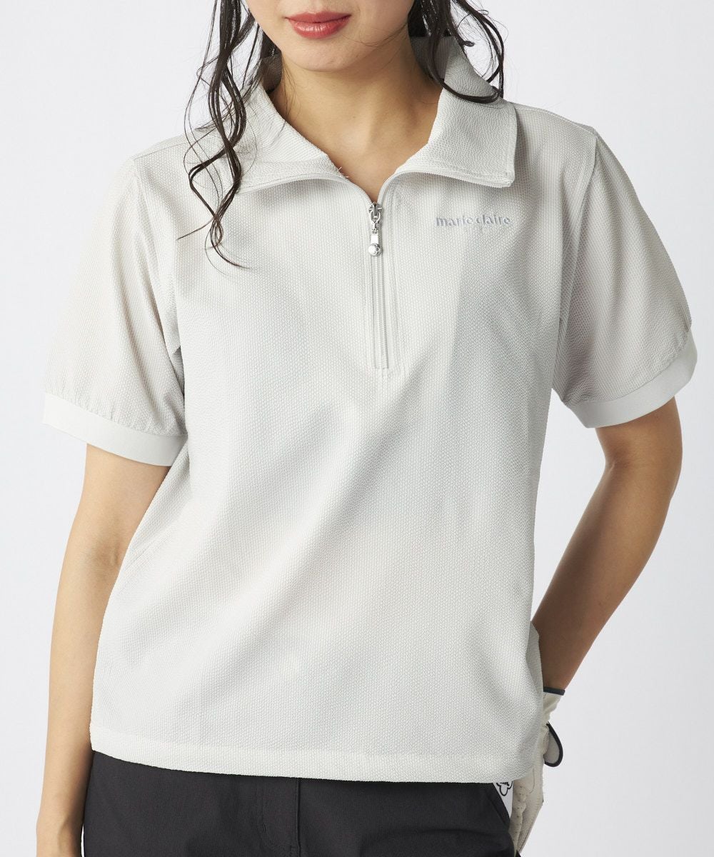レディース シアサッカー素材 半袖ジッププルオーバー | 吸汗速乾・UV・ストレッチ