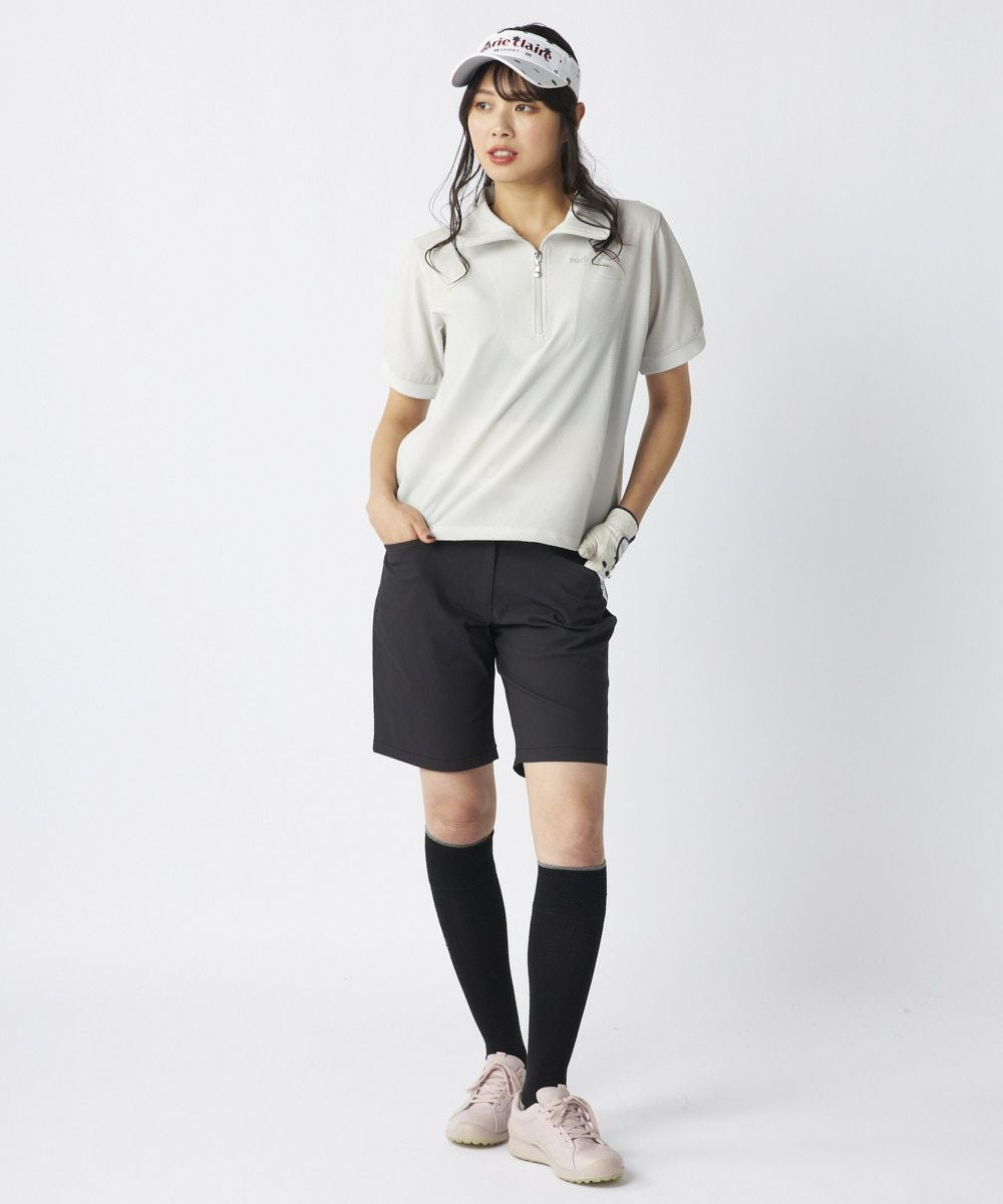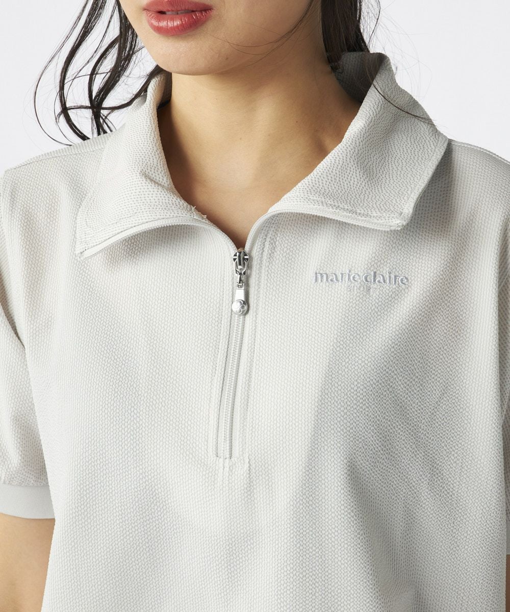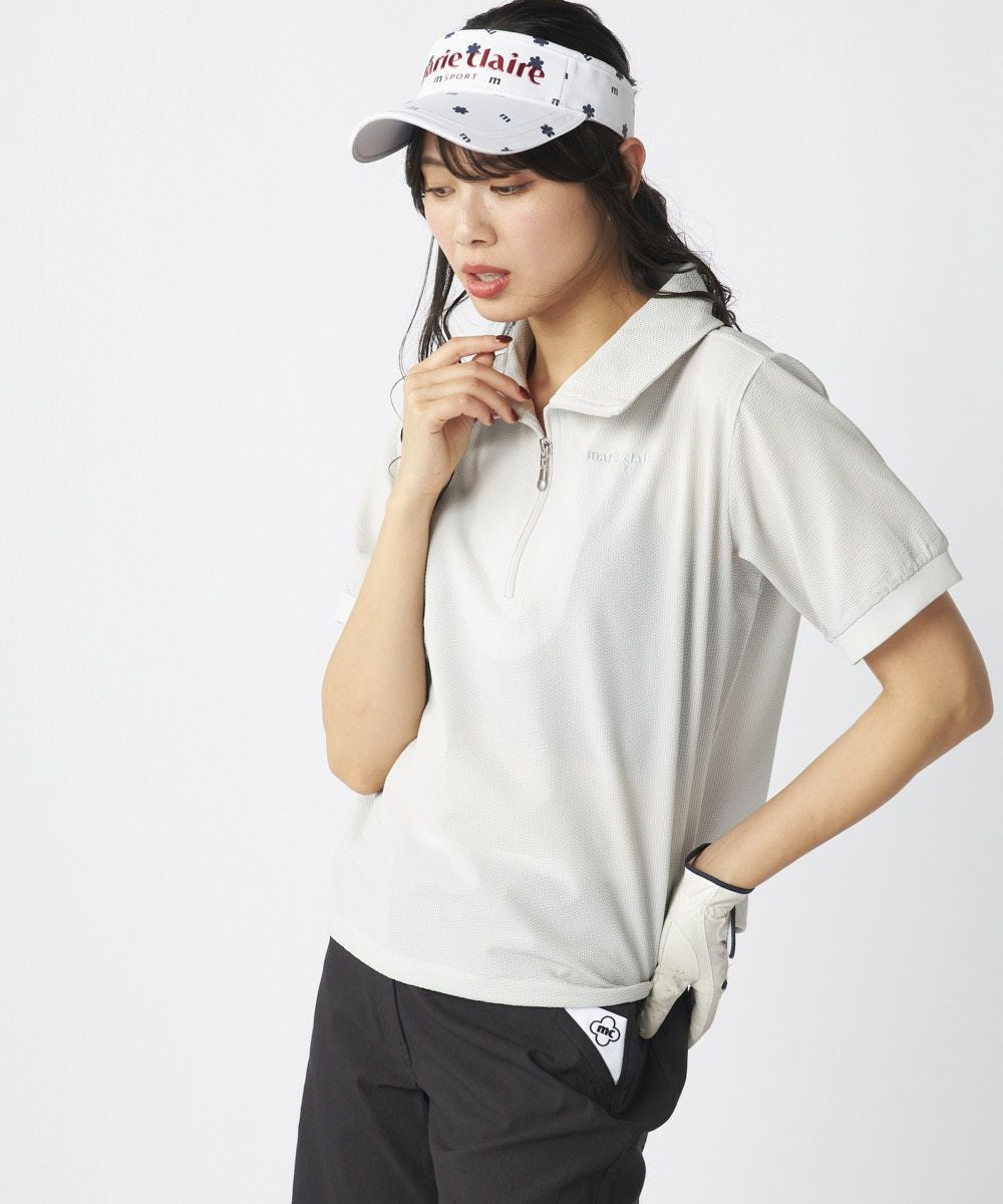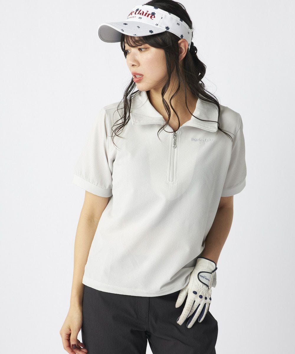 レディース シアサッカー素材 半袖ジッププルオーバー | 吸汗速乾・UV・ストレッチ