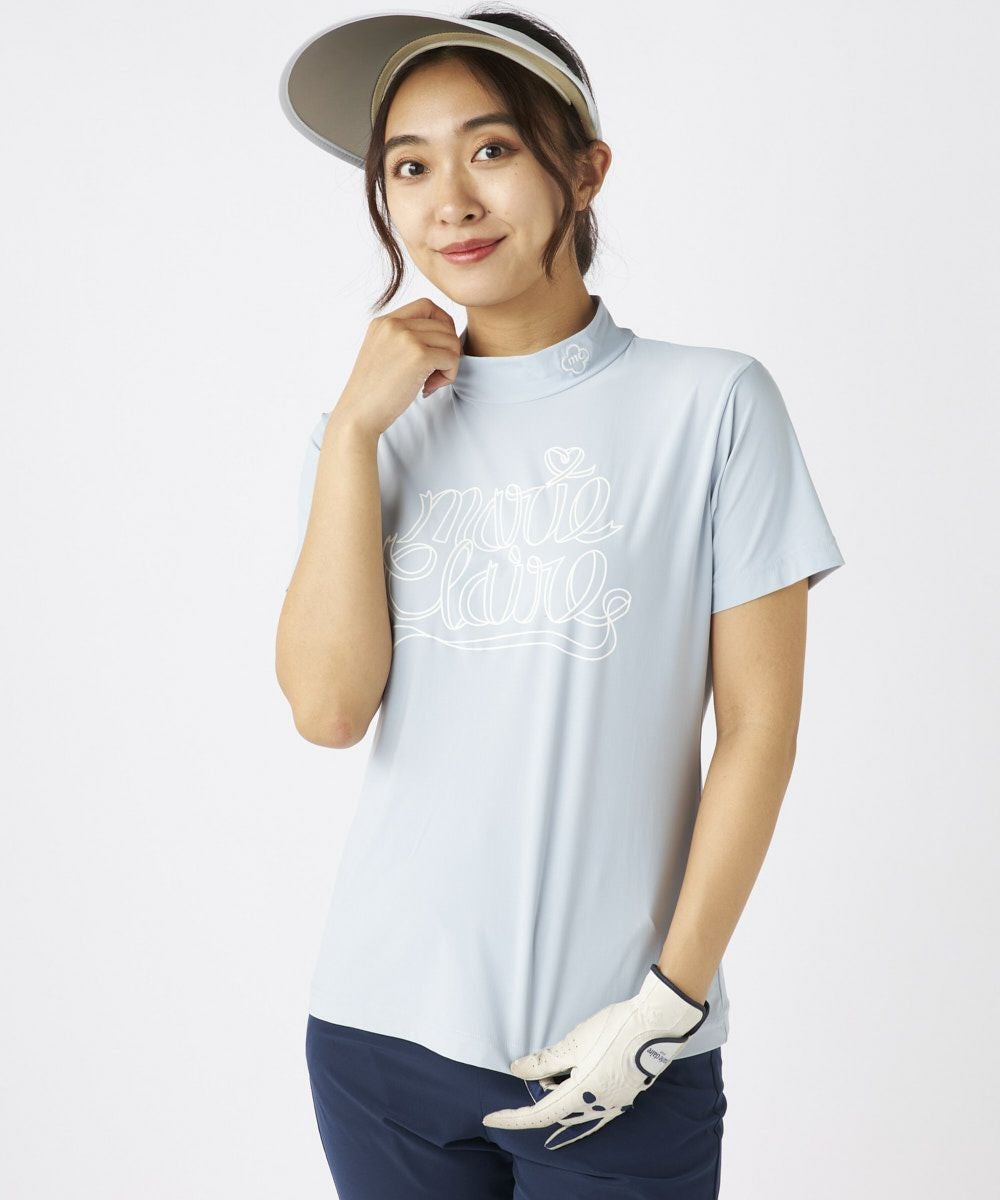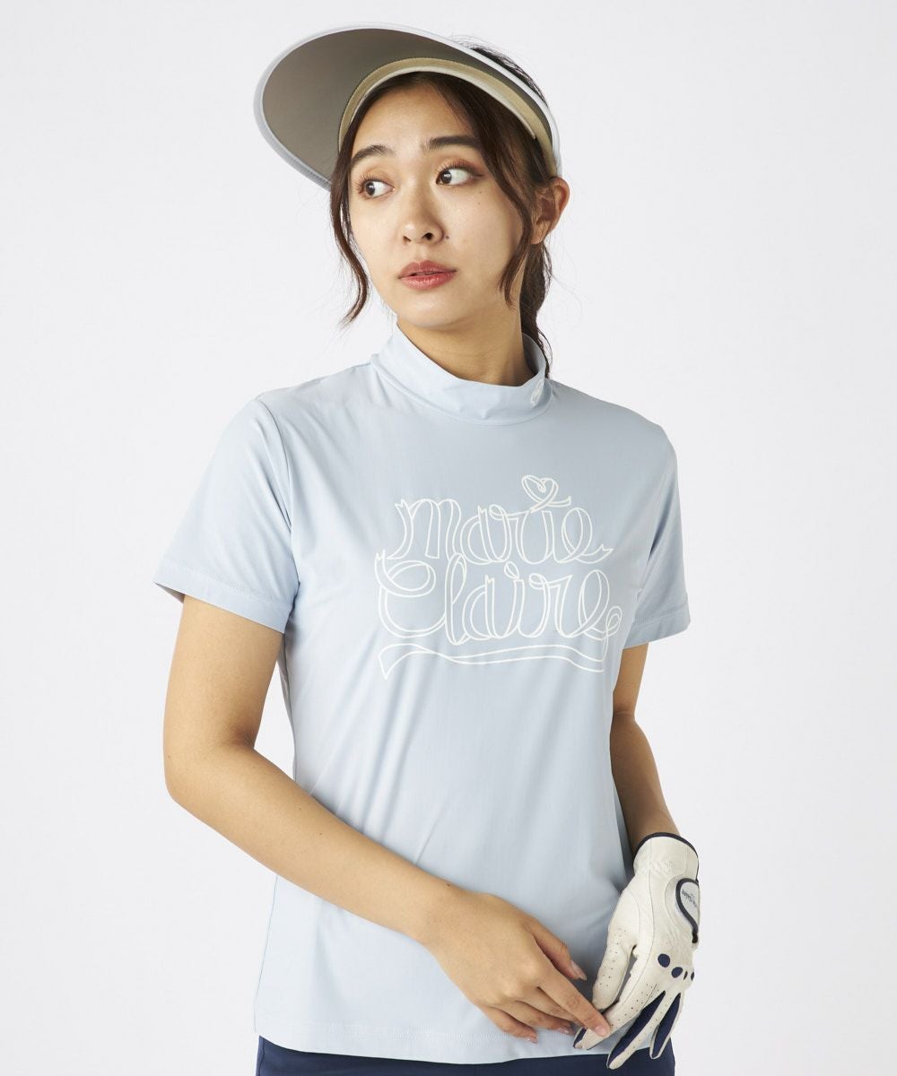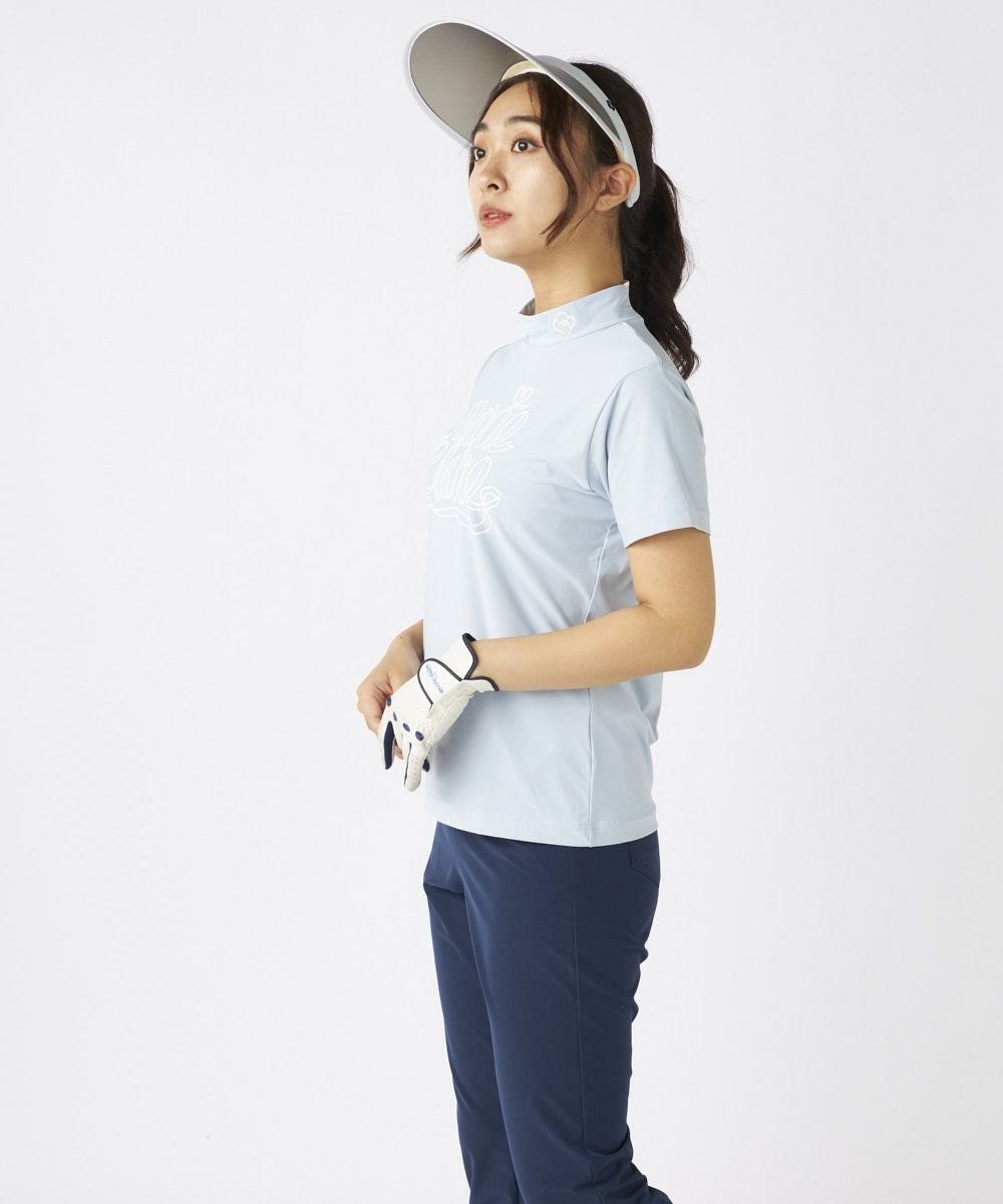 レディース 【スーパーナイロンクール】ロゴ半袖モックネックシャツ| 吸汗速乾・UVカット・接触冷感