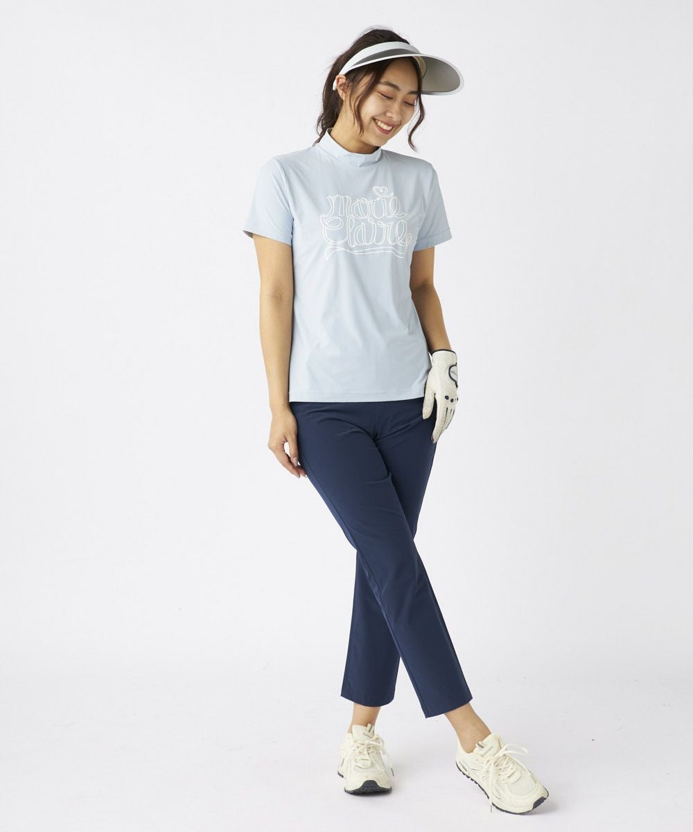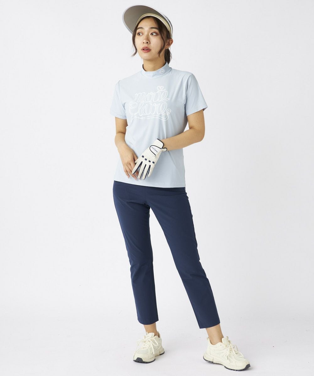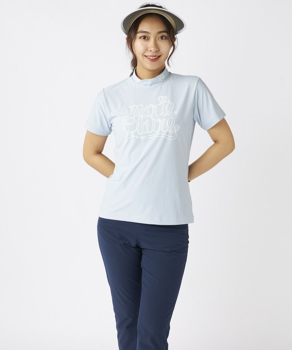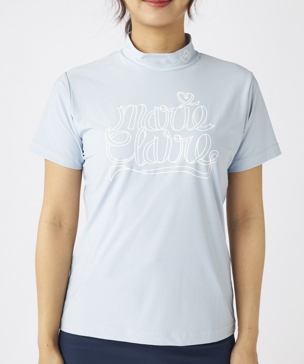 レディース 【スーパーナイロンクール】ロゴ半袖モックネックシャツ| 吸汗速乾・UVカット・接触冷感