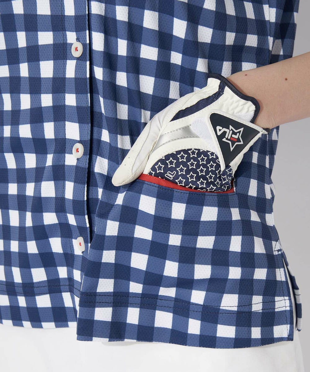 リブ衿使いが新鮮な、ボーリングシャツをイメージしたオープンカラーシャツ。左裾には、ティーやマーカーなどを収納できる便利なミニポケット付き。