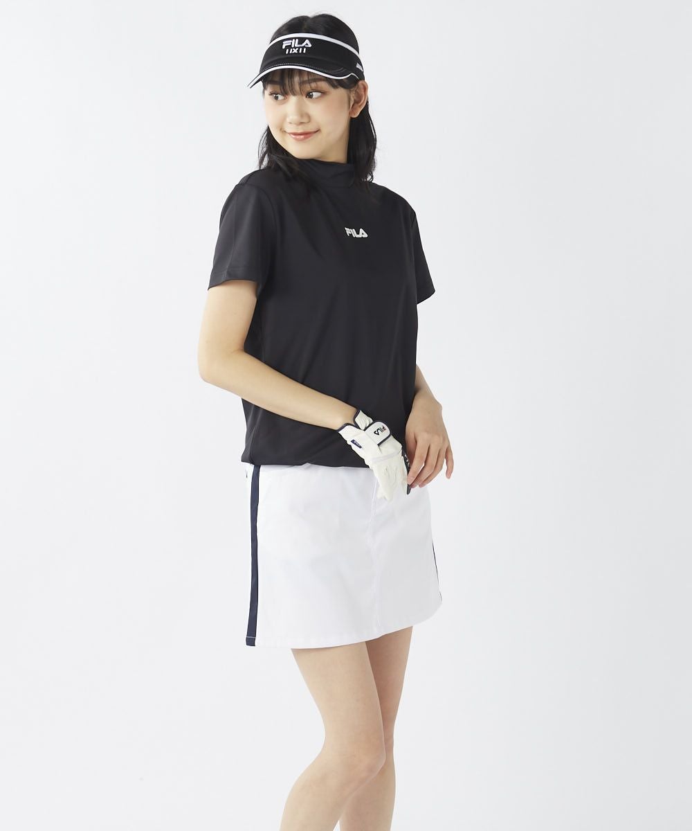 バックプリントがかっこいいモックネックシャツ。正面はシンプルなFILAのロゴ入りです。ボトムスを選ばずコーディネートが可能です。