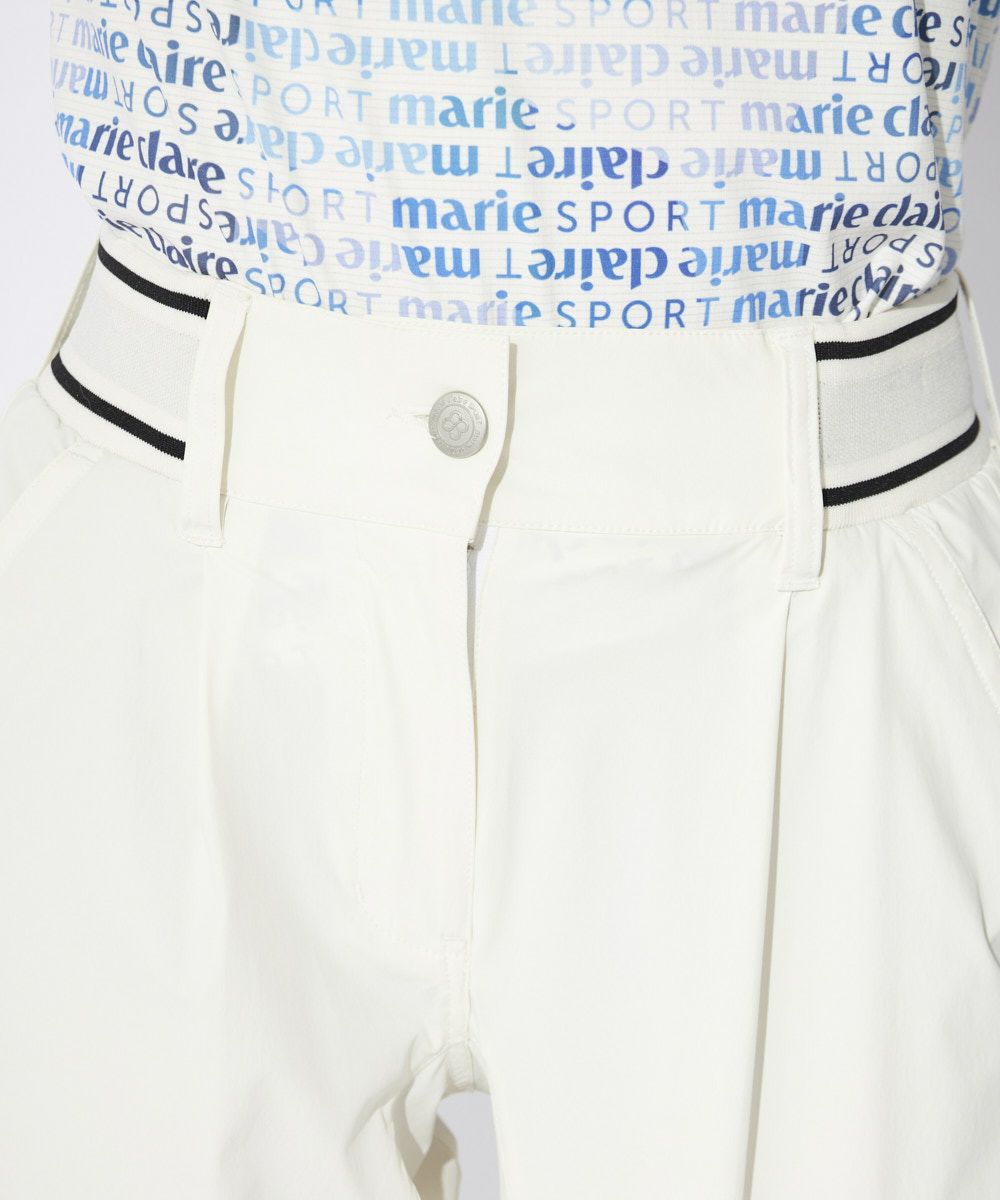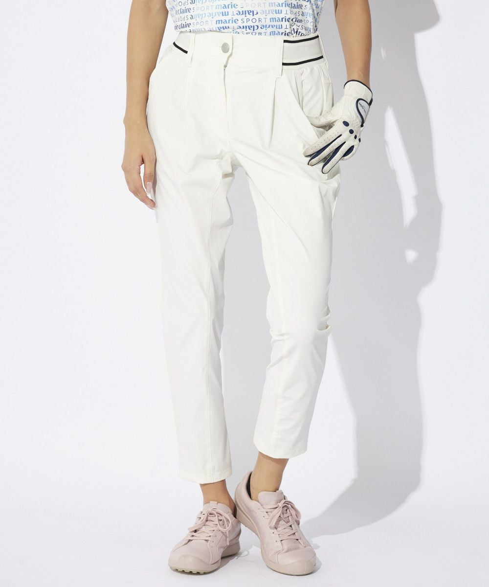 上品にタックをあしらったテーパードパンツがシャープでヘルシーな印象。