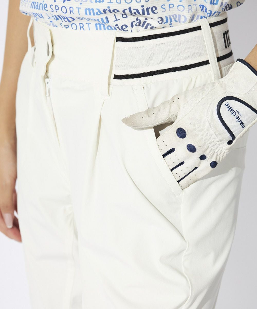 同素材のトップスと合わせたセットアップコーディネートがおすすめです。上下合わせるだけで、こなれたおしゃれゴルフコーデが完成します!