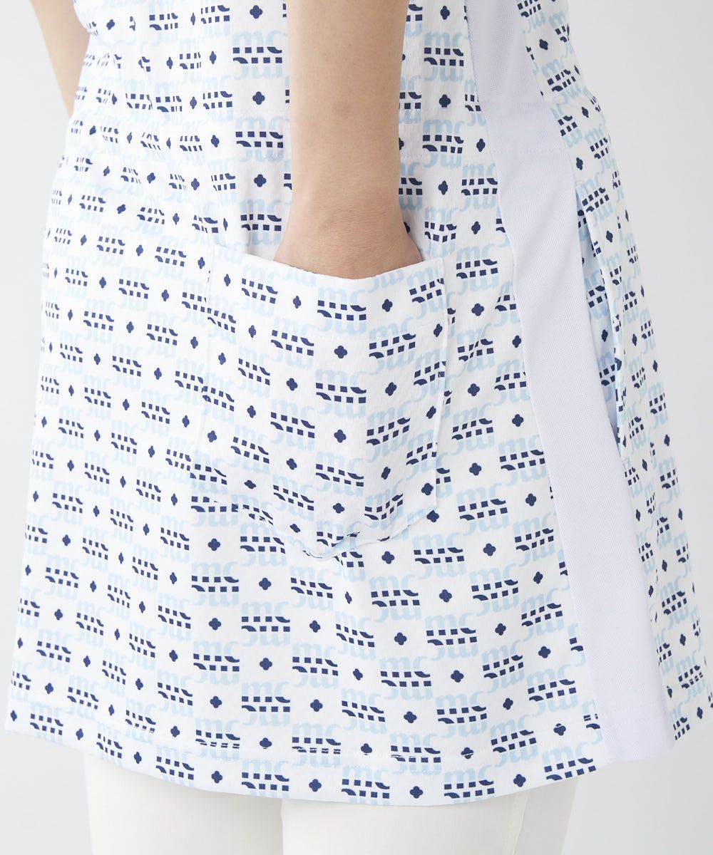 レディース モノグラム柄ハーフジップチュニック| 吸汗速乾・UV・吸湿涼感・接触冷感