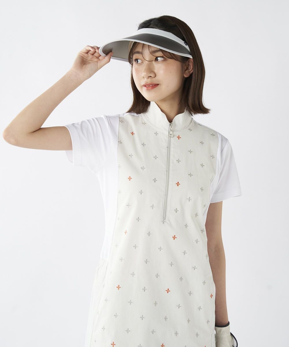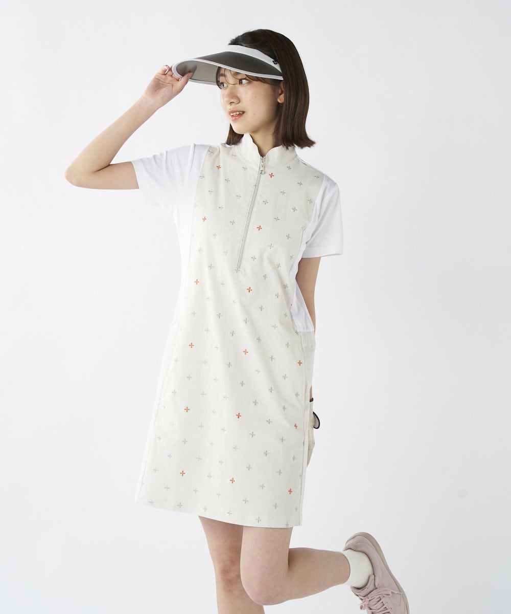 レディース 切替刺繍コードレーン素材ワンピース | 吸汗速乾・UVカット・ストレッチ