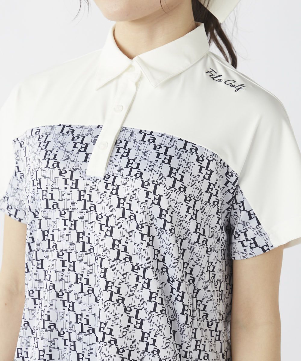コーディネートのアクセントになるFILAをデジタルフォントで表現したタイポ柄がおしゃれです。吸汗速乾性に優れた素材を使用し、暑い季節でも爽やかにプレーを楽しめます。