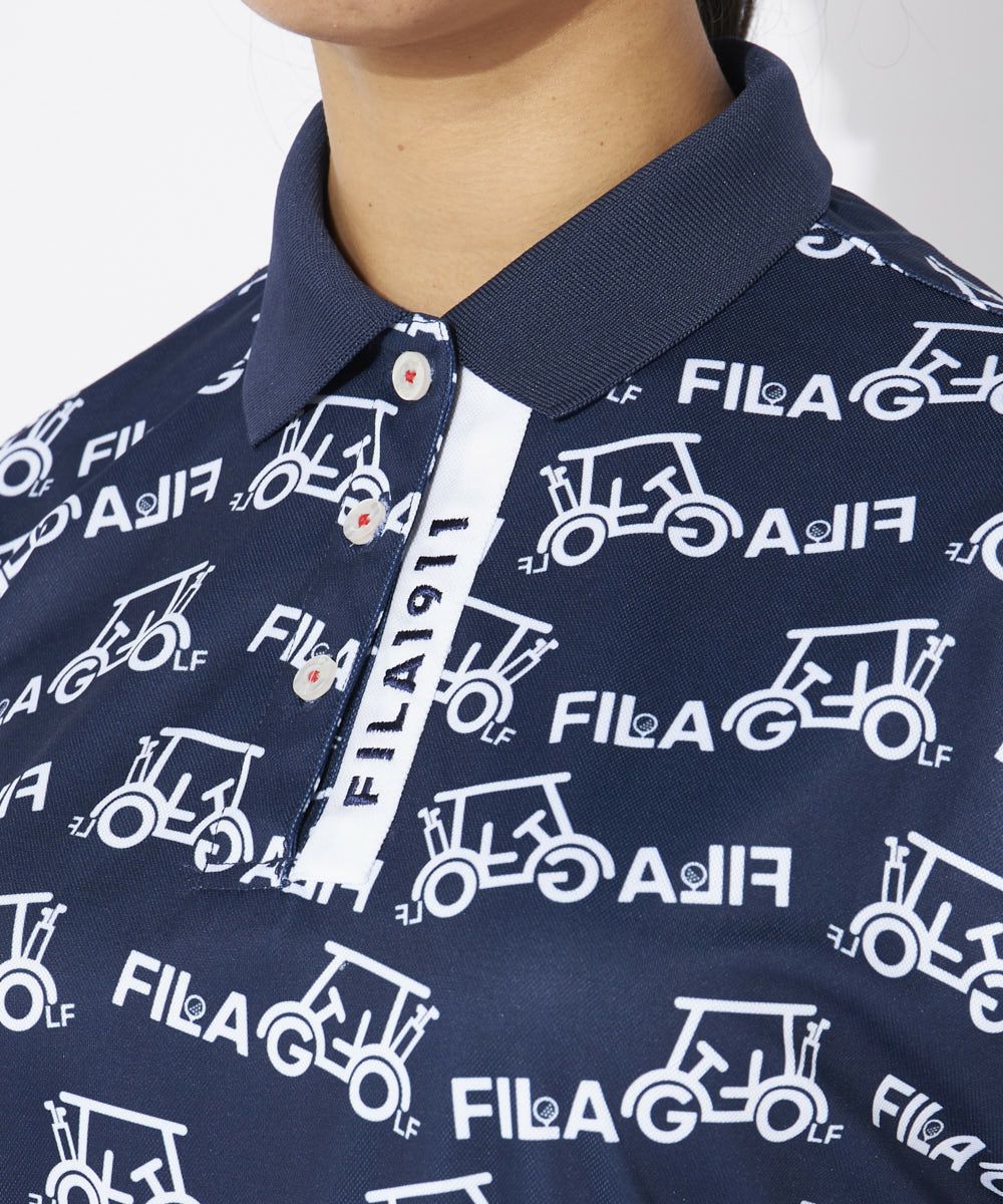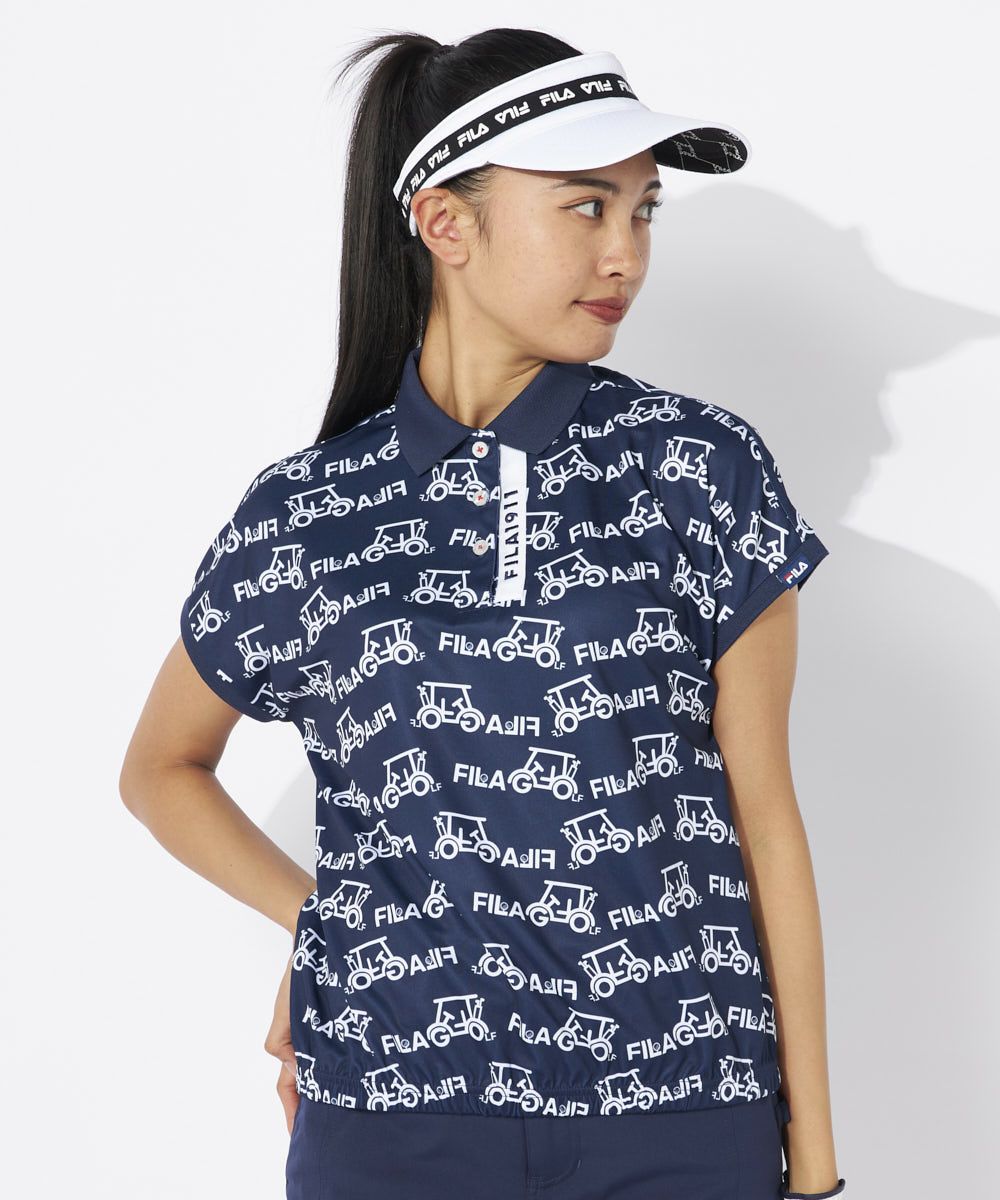 カートをモチーフに使用したポップなプリント柄の半袖シャツ。肌あたりの良いアームホール切替のない、フレンチスリーブタイプ。裾口は、アウトにしてもスマートにキマる、ゴムシャーリング仕様。
