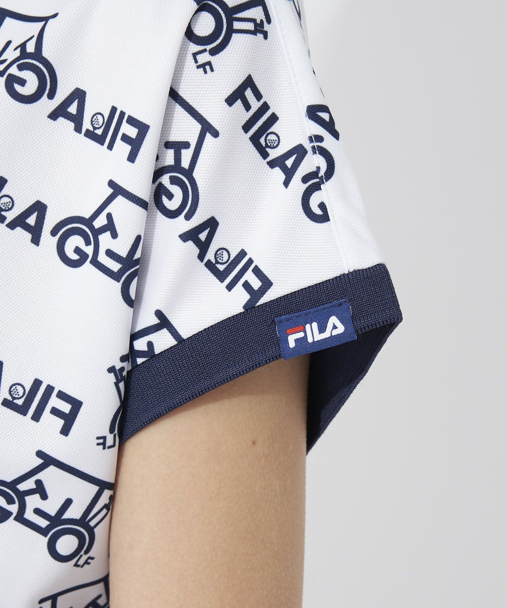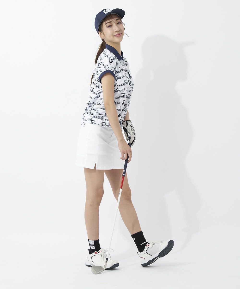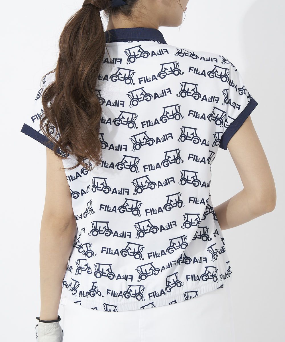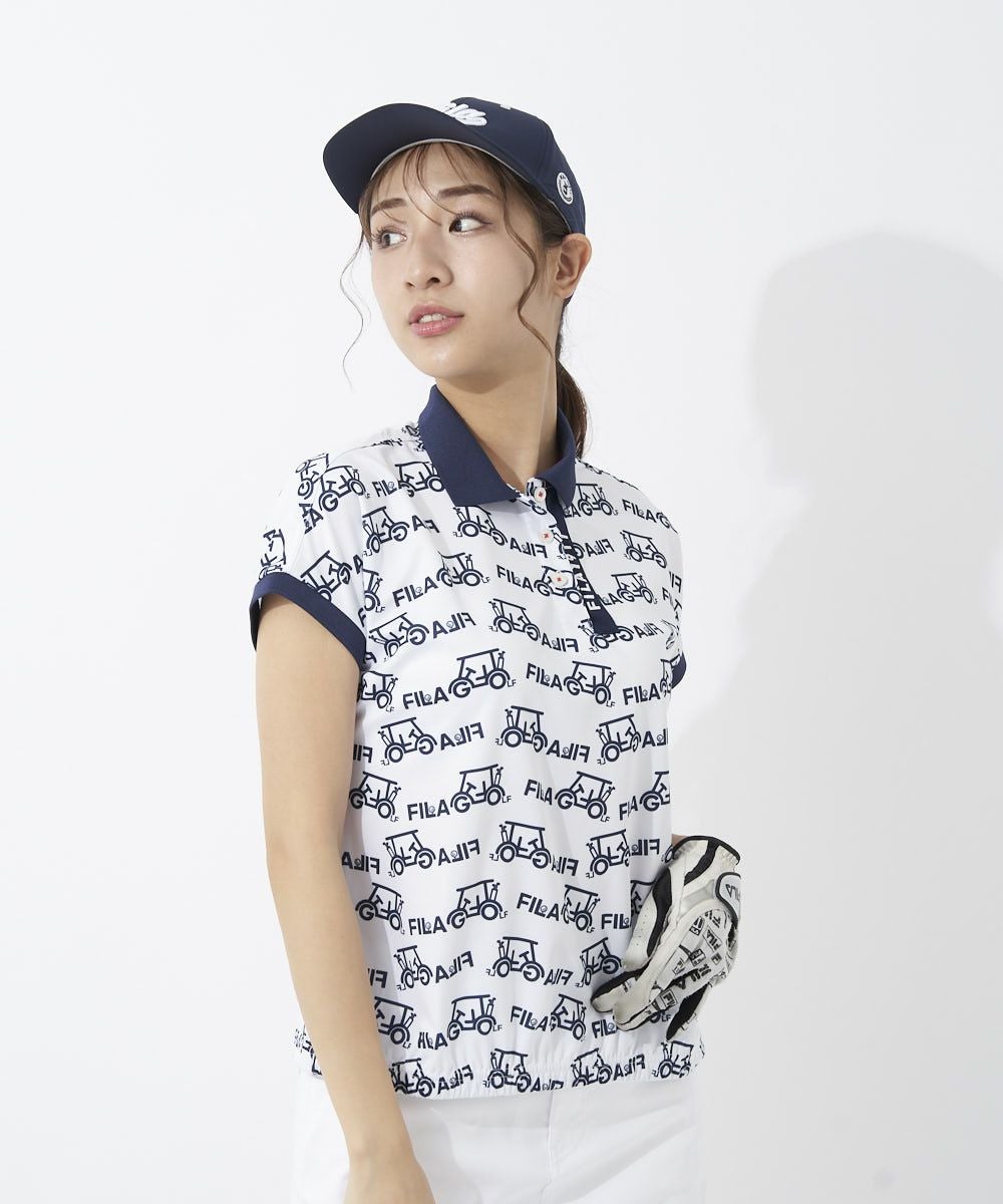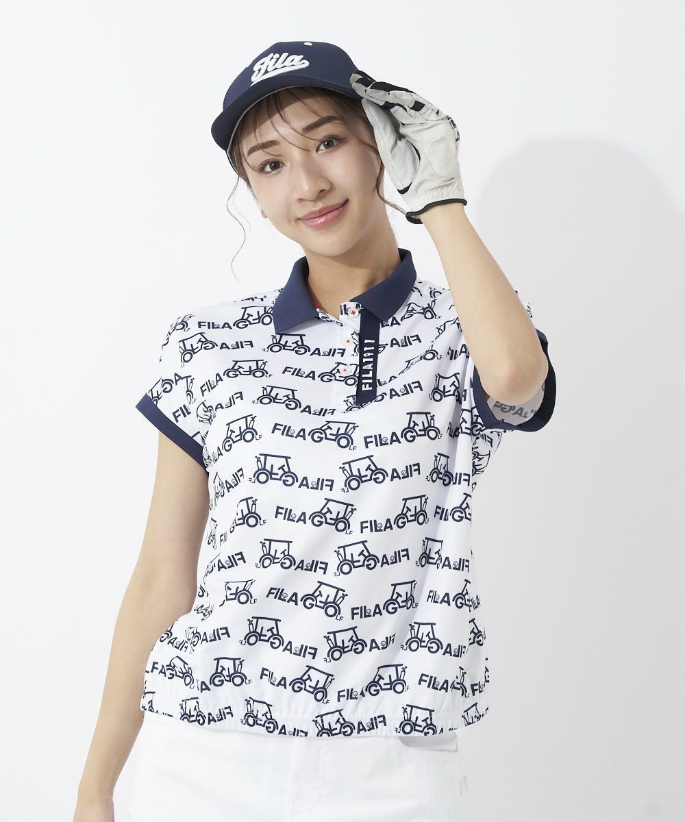 カートをモチーフに使用したポップなプリント柄の半袖シャツ。肌あたりの良いアームホール切替のない、フレンチスリーブタイプ。裾口は、アウトにしてもスマートにキマる、ゴムシャーリング仕様。