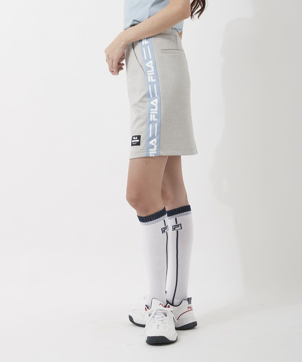 軽くて着心地の良いダンボールニット素材を使用したタイトスカート。インナーパンツセット。ジャストウエストで着用するハイライズタイプ。両脇にFILAロゴラインを施し、レトロスポーティーなイメージに仕上げました。