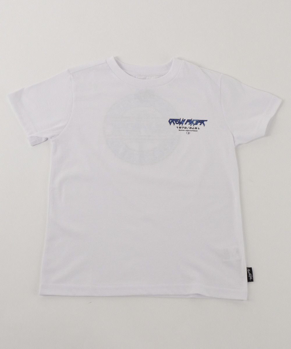 バックにフォトグラフィックを入れたスケートスタイルのプリントTシャツ。