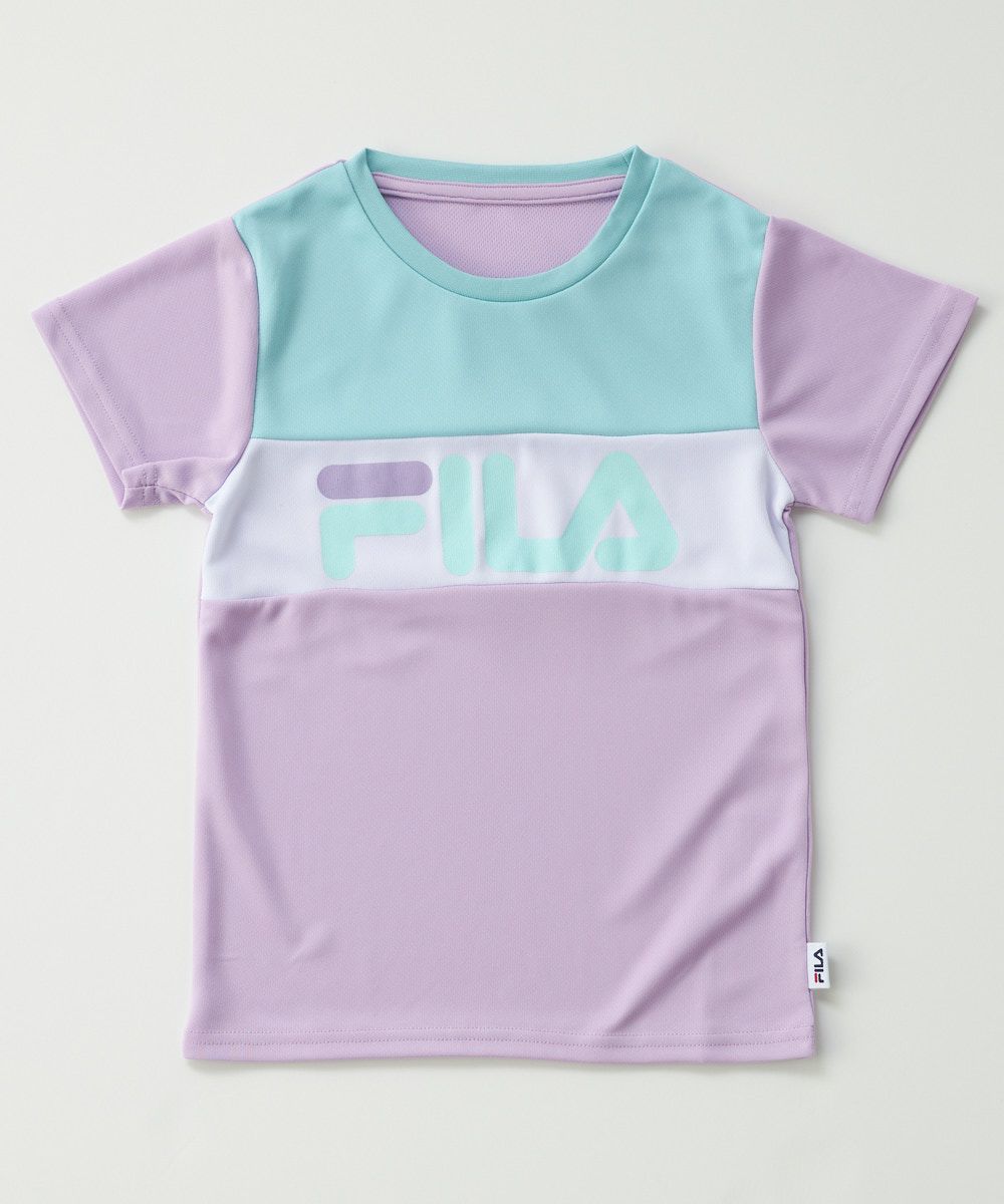 パステルカラーの切り替えTシャツ。定番適な切り替えデザインと、パステルカラーの組み合わせで、ガーリー でスポーティーなデザインです。FILAのロゴプリンがアクセントになっています。サラッとした肌触りの素材が アクティブなシーンにお勧めです。