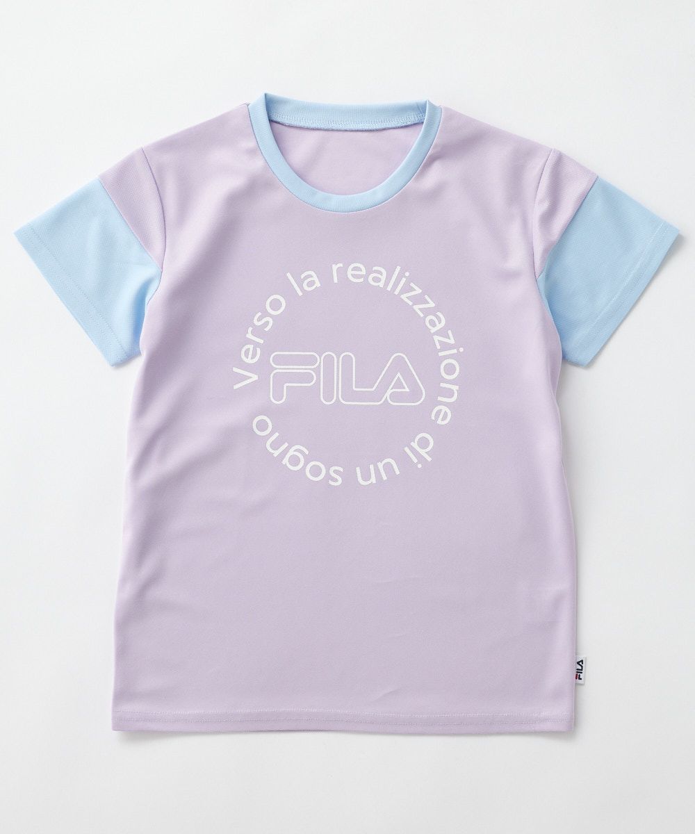 FILAのサークルロゴがポイントになった袖切り替えTシャツ。ドライ感のある素材で、涼しく着用できます。
