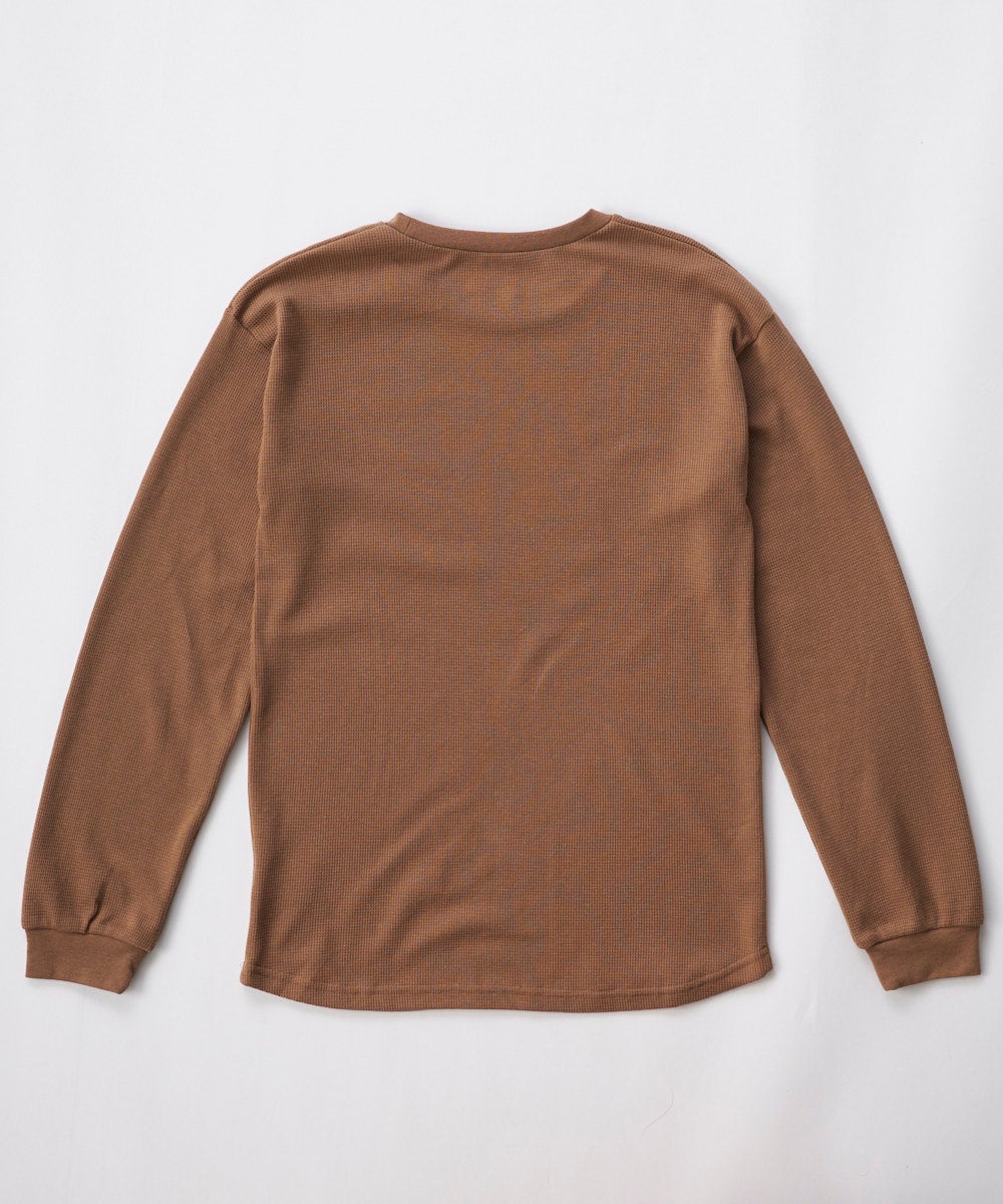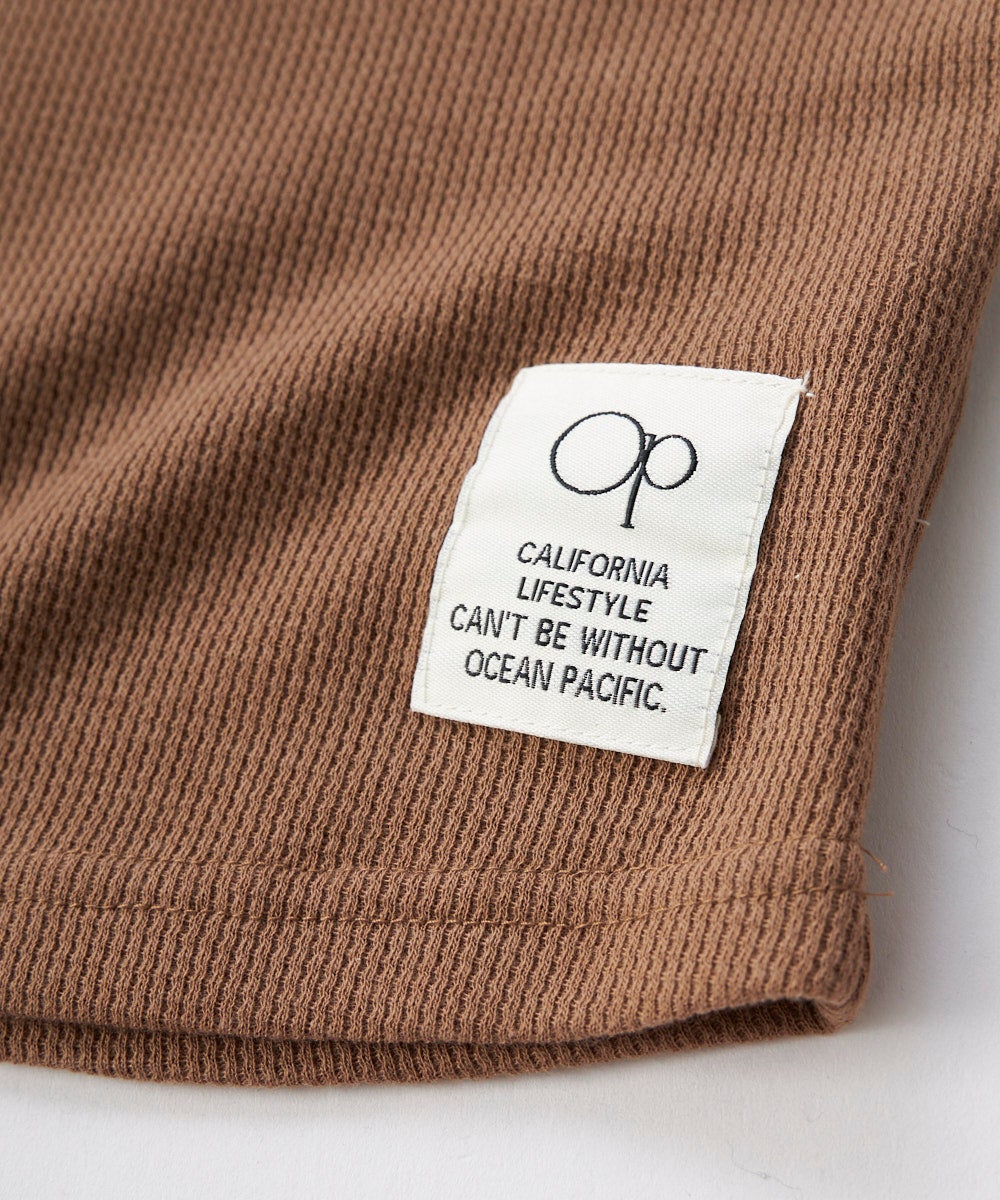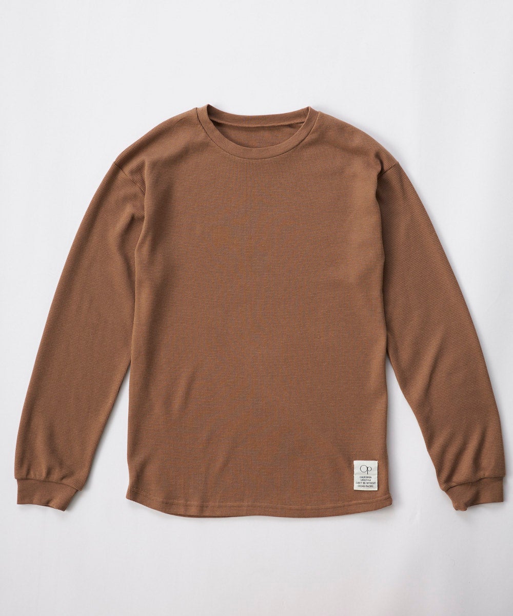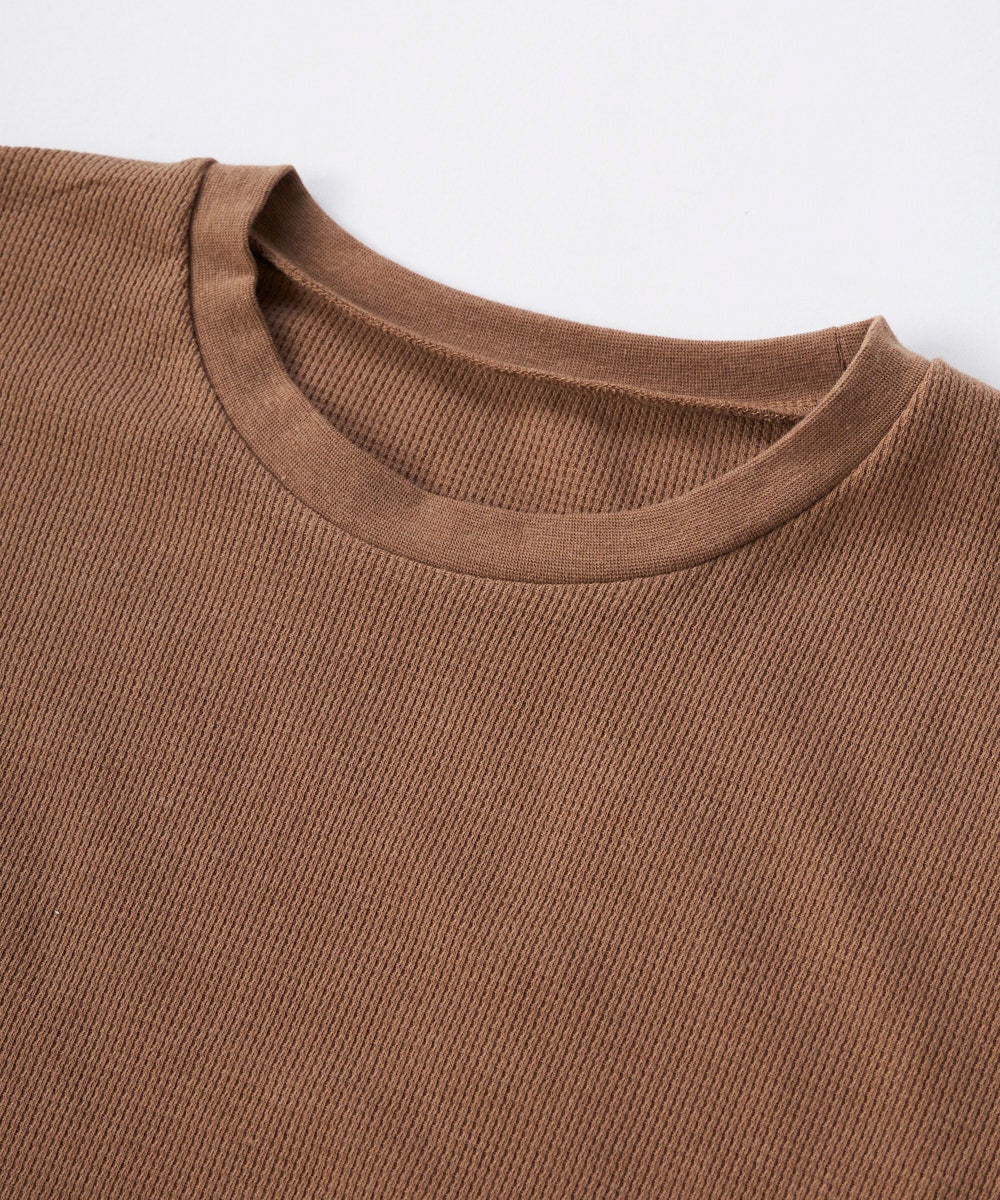 肌触りの良いワッフル素材のロンT.1枚で着たりレイヤードしたり使いまわしやすいシンプルなデザインがポ イント。