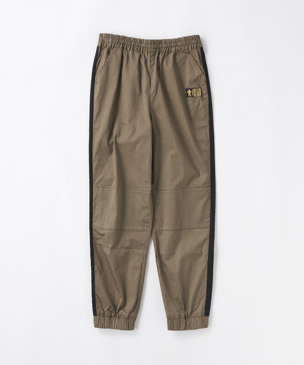 両サイドのロゴテープがデザインアクセントのストレッチツイルパンツ。今期はダメージが出やすい膝部分を2 枚仕立てで補強してバージョンアップさせました。裾が絞られているので多少大きくても履きこなしやすい仕様 になっています。