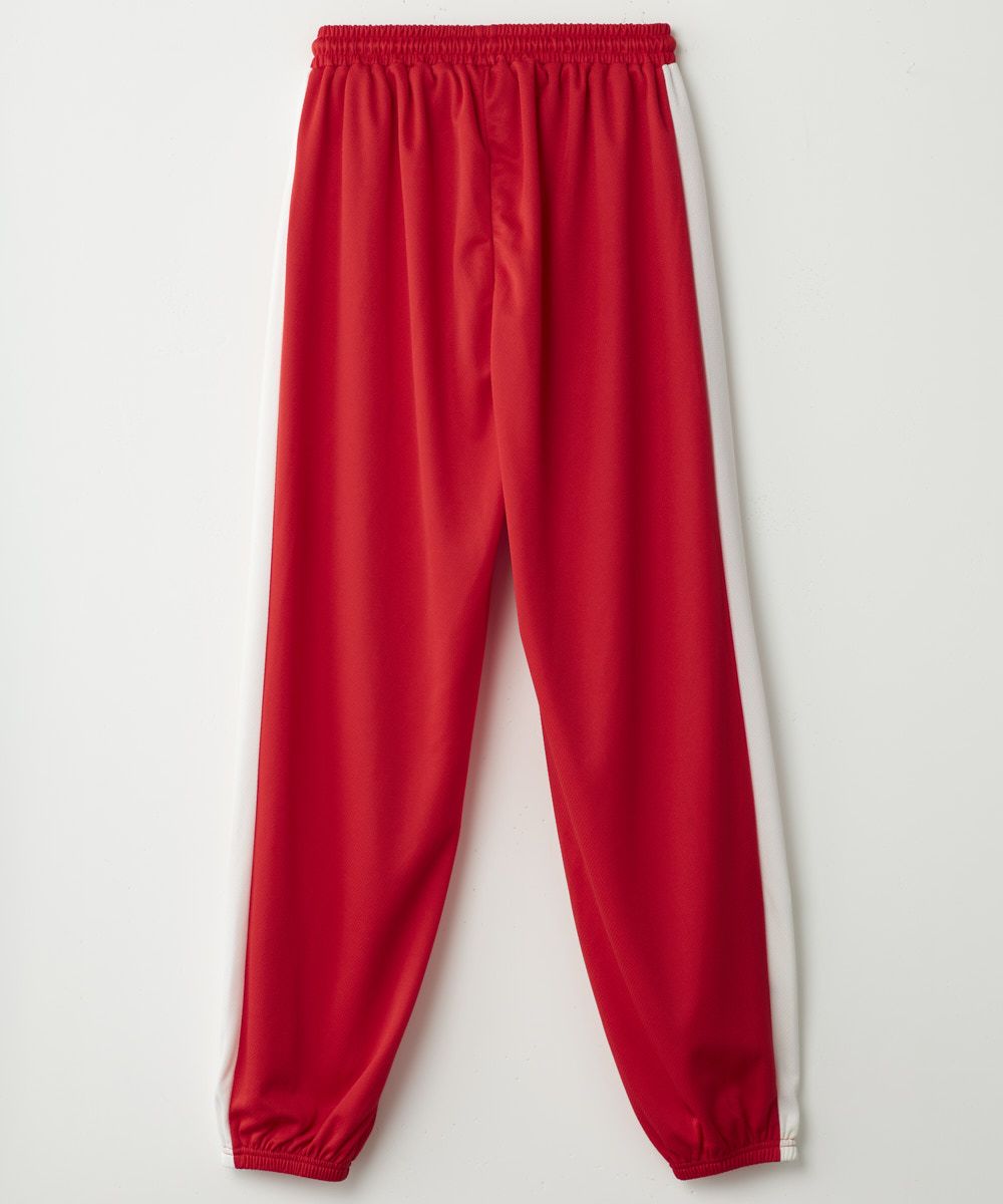 少し光沢感のあるジャージにすることで遠くからでも映えるデザインに仕上げています。裾はドット釦でシルエット調整も可能です。
