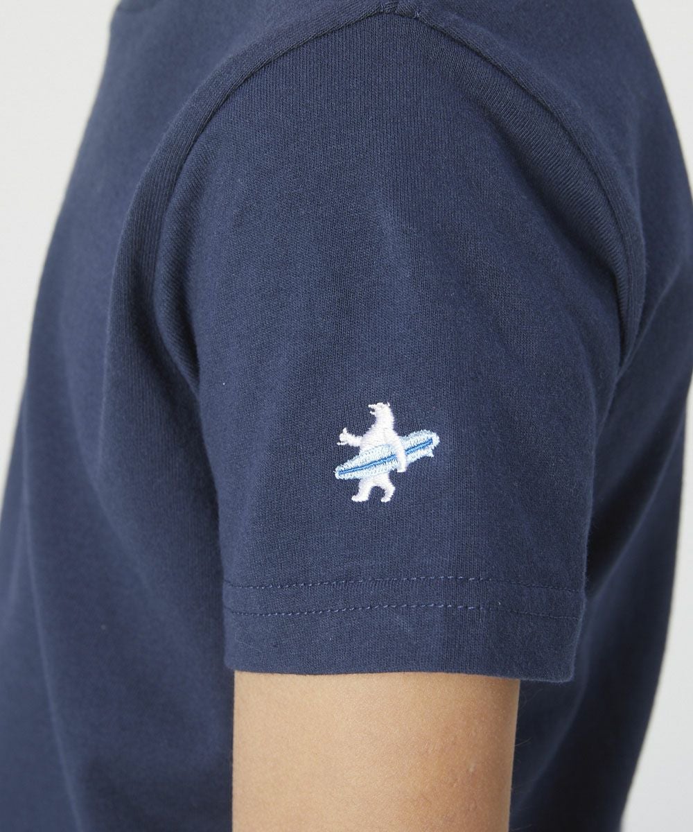 シンプルなデザインに袖のクマ刺繍がワンポイントのTシャツ。コットン100%の肌触りの良い素材で作られています。この夏のお子様の成長にピッタリのTシャツです。