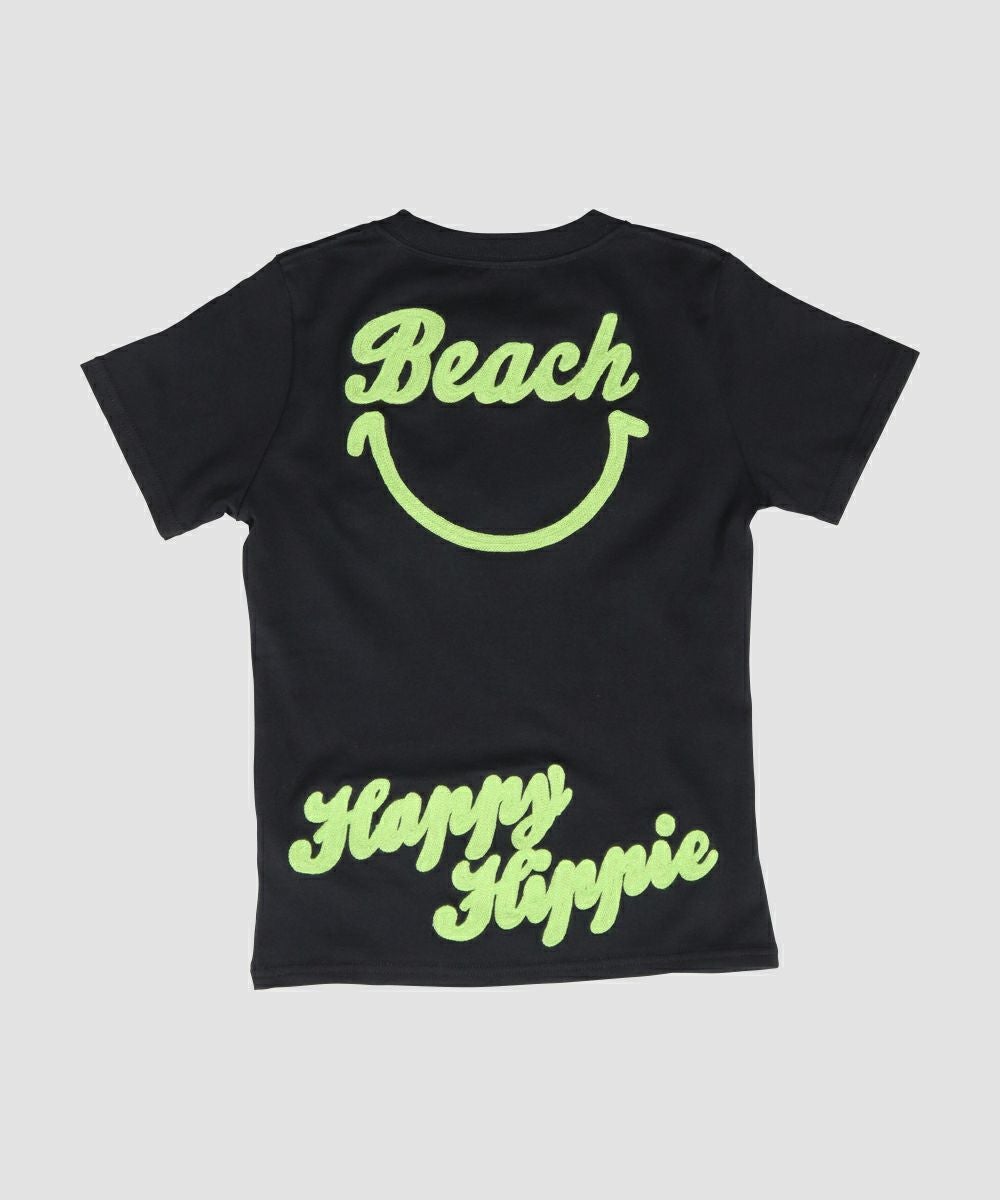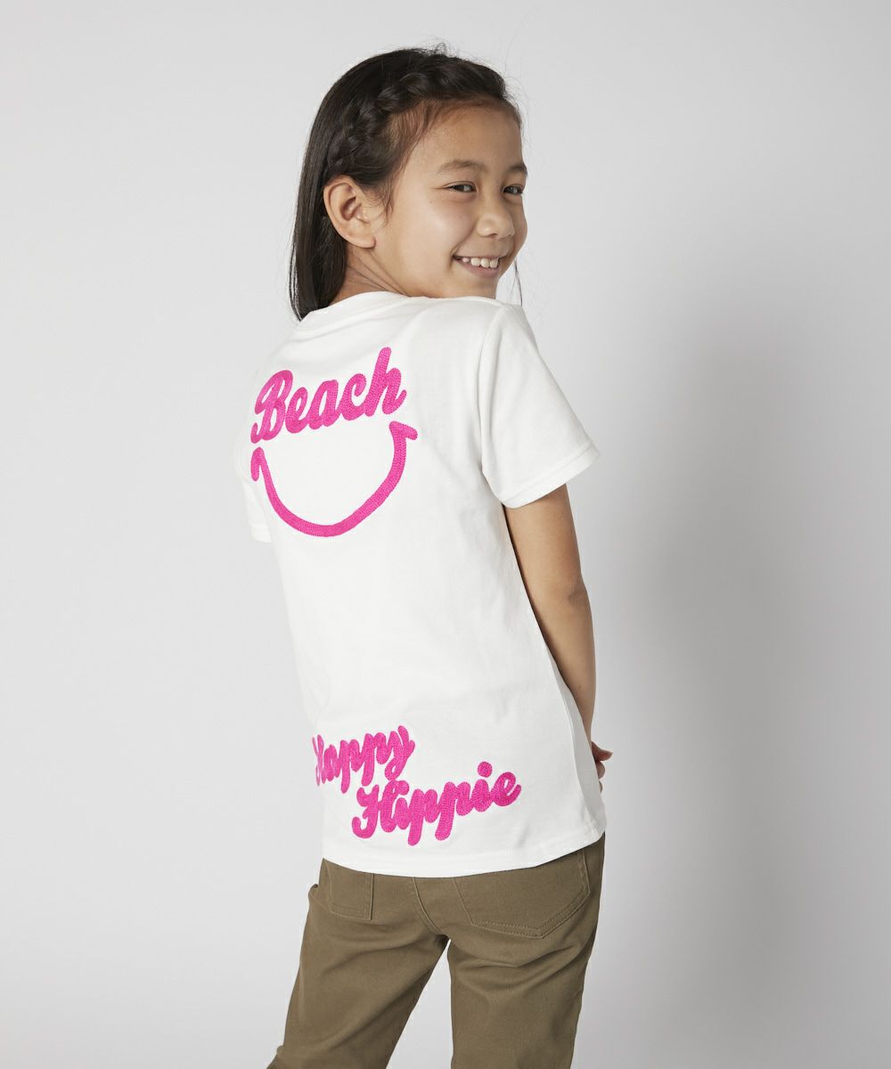 フロントのブランドロゴとバックの上下のメッセージパターンデザインが明るく目を引く。アウトドアやイベントで着たい、シンプルでキュートなデザインがオススメのアイテムです。