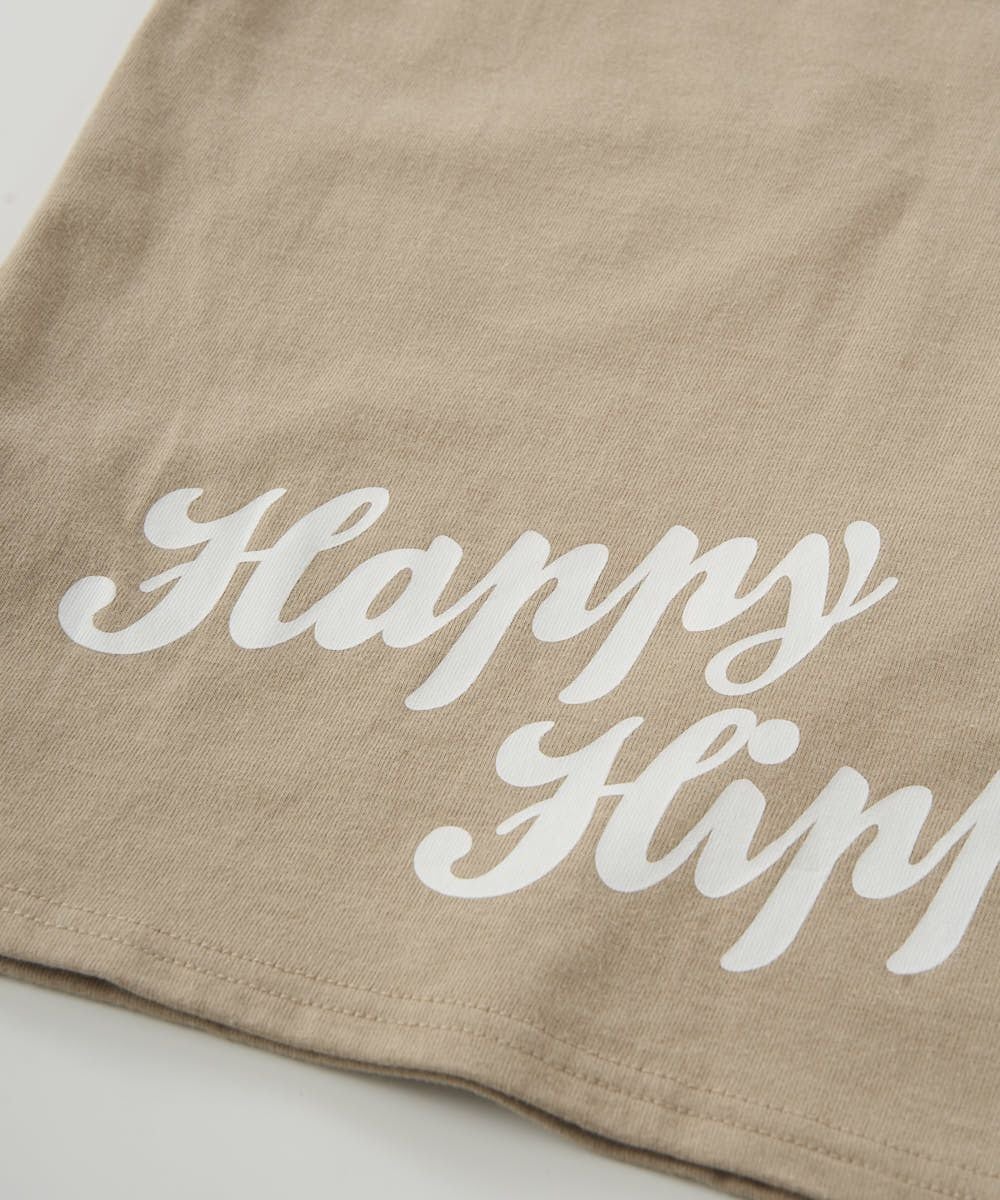 RUSTYのロゴはフロント真ん中に、定番のニコちゃんプリントはバックに配置。
