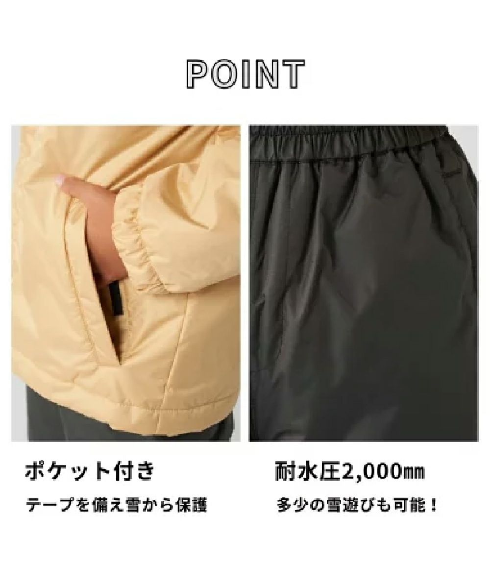 スキーやスノーボード、雪の中の通学にも最適な上下セット。撥水加工がされており、スノーウェアとしても雨の日や防寒着として大活躍!