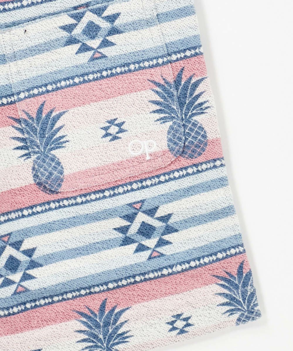 裏毛裏パイナップルボーダープリントショーツ 裏毛裏パイナップルボーダープリントショーツ。ウエストリブで紐付きでしっかり固定で履きやすい。