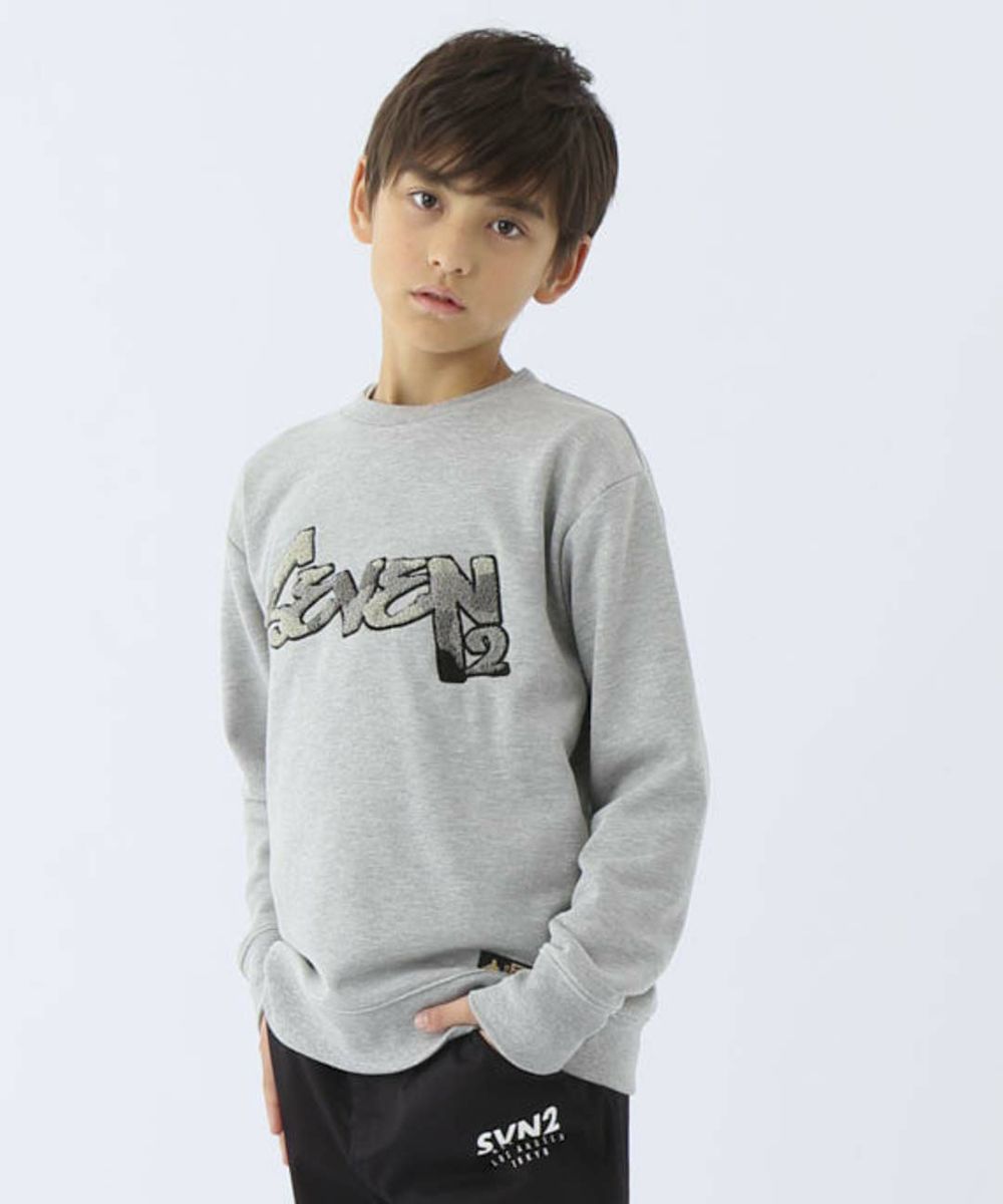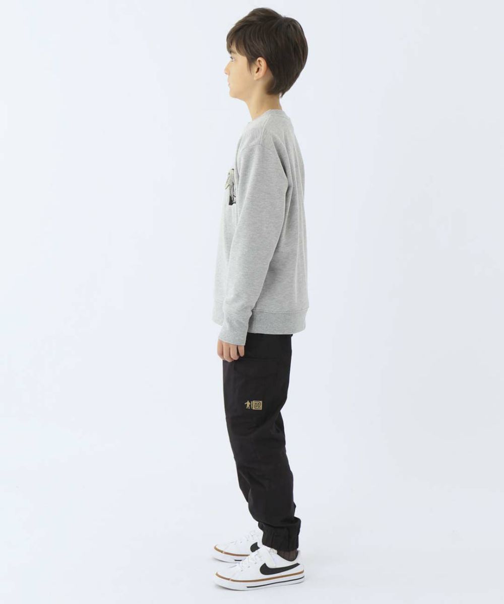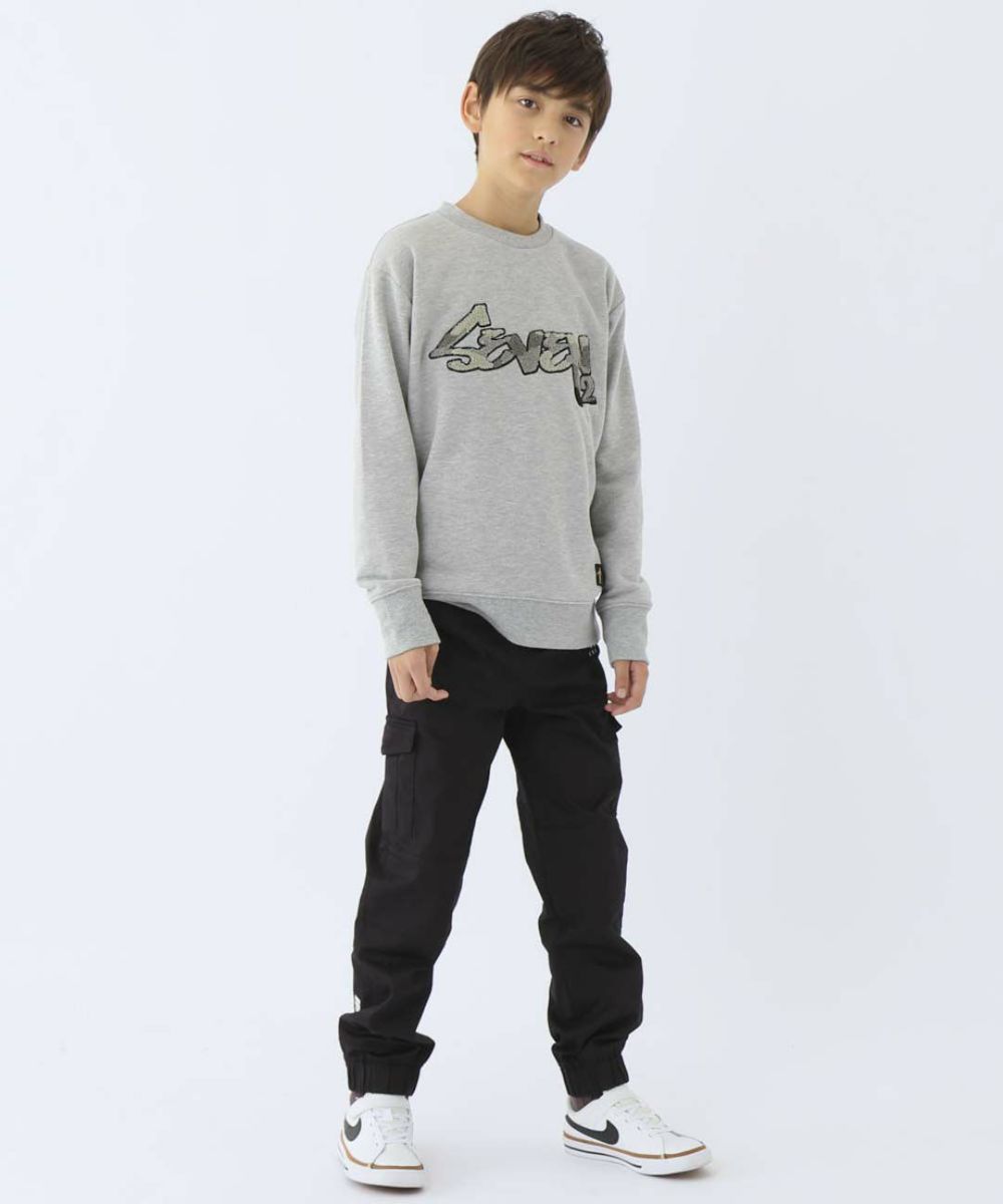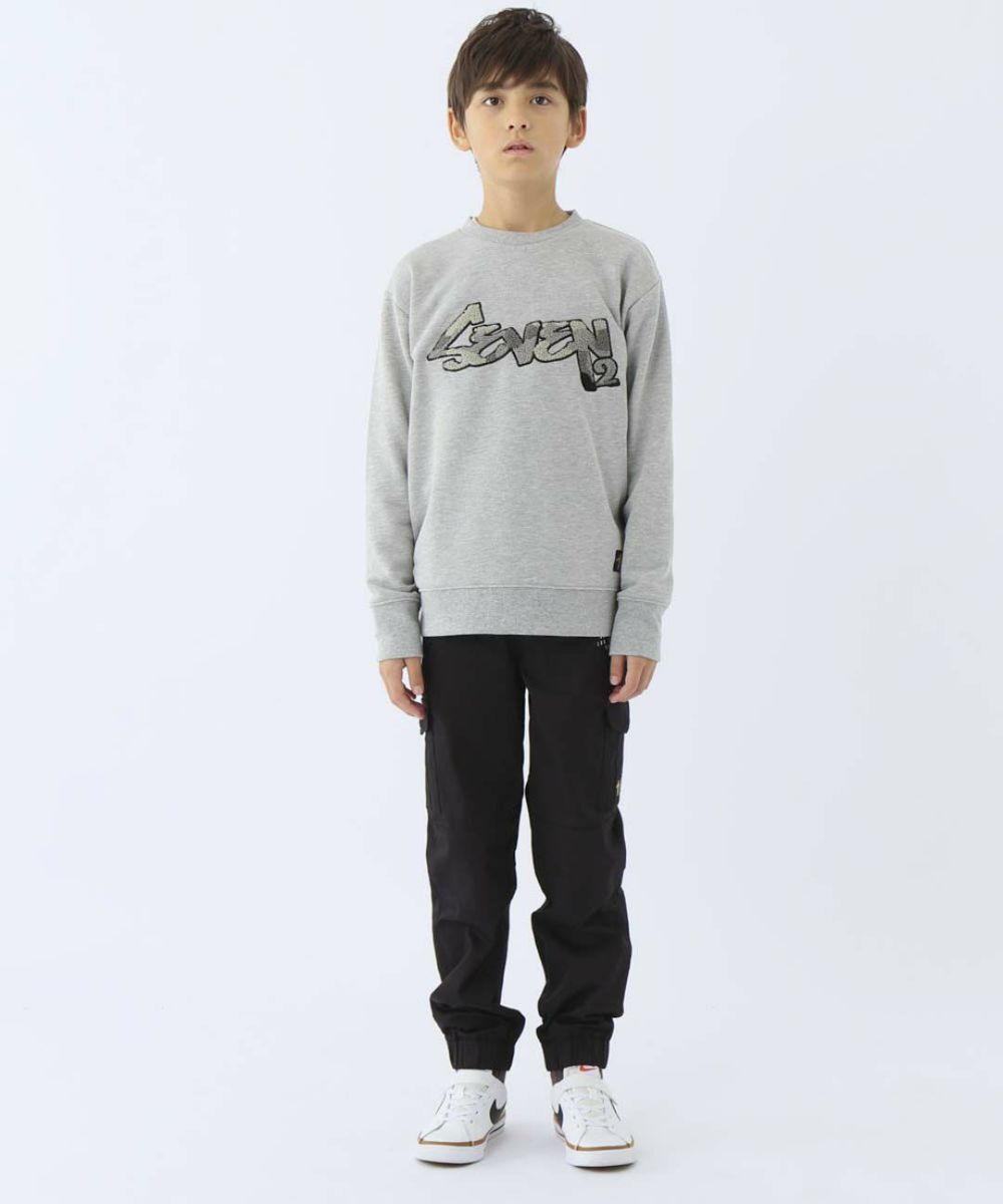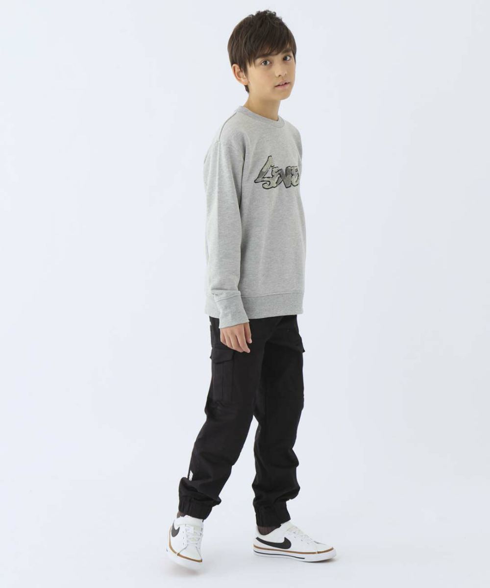 迷彩のアップリケがおしゃれな裏毛トレーナー。ほど良い厚みとサイズ感で通学着としてもおすすめです。