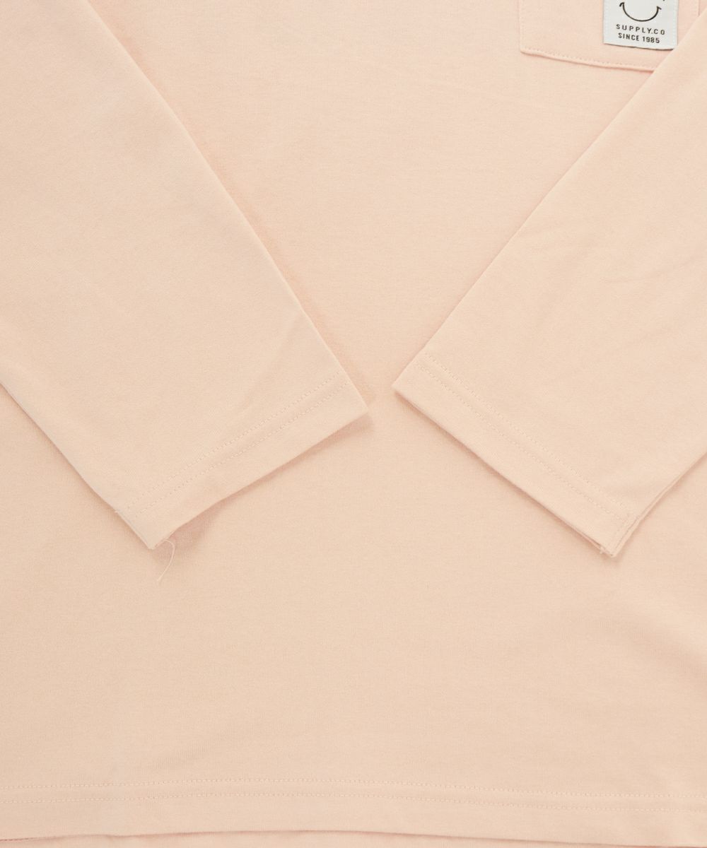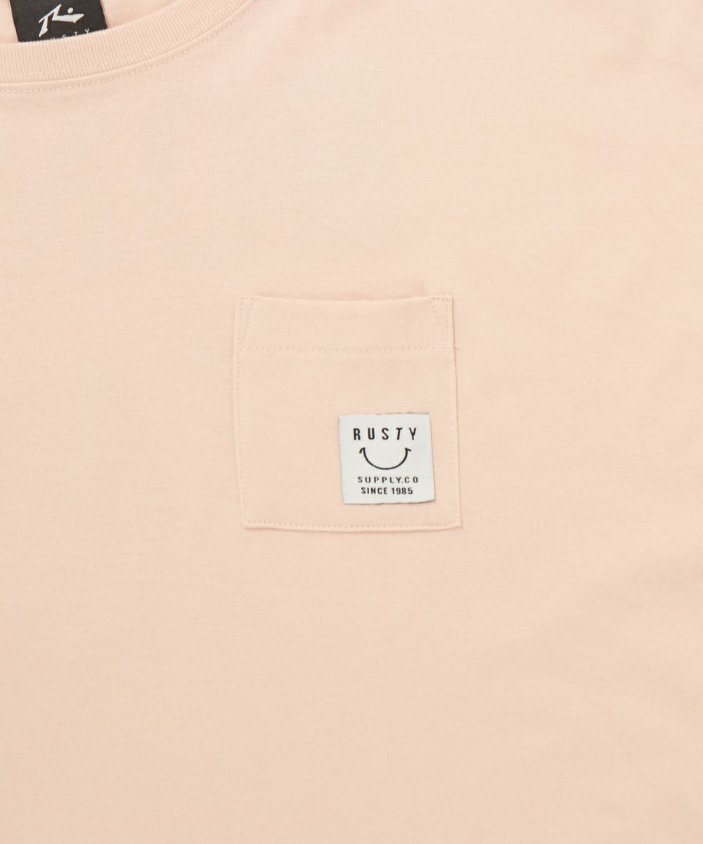 ポケットのにこっとした口元がデザインされているワッペンやバックロゴが