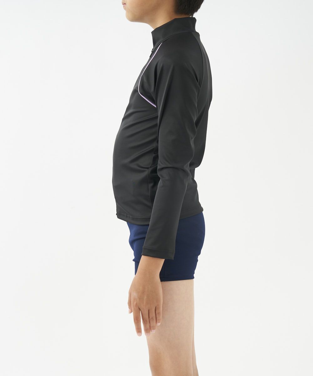 スタンドカラーなので首回りも紫外線からガードできるラッシュガード。サーフィンやマリンスポーツだけでなく、海水浴やプールでの冷え、様々なレジャーにも活躍。