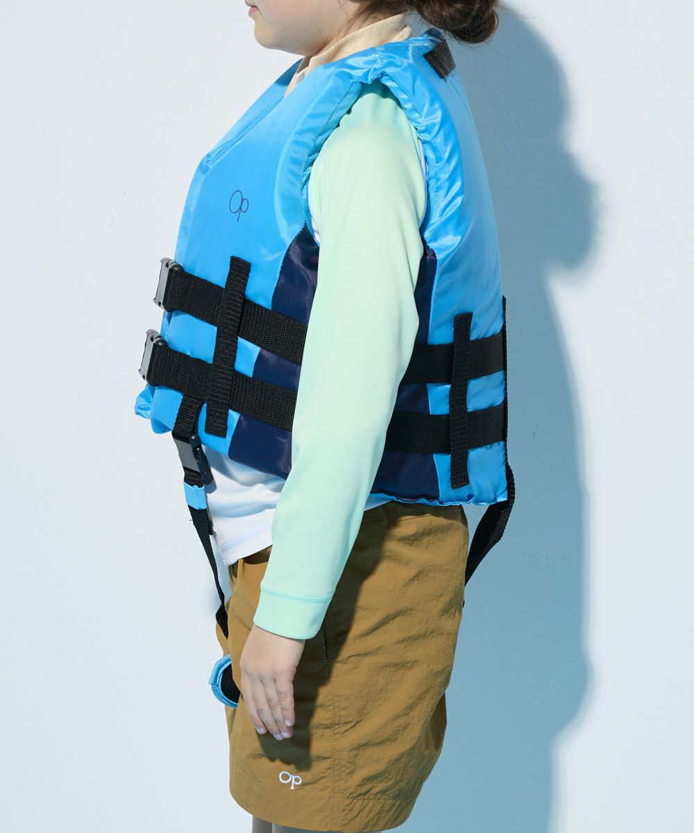 国土交通省型式承認品ライフジャケットと同様の浮力試験に合格しており、身に付けることでより快適なマリンレジャーを楽しめます。お手頃価格で動きやすさ・快適な着心地を重視した、レジャー向け子供用のフローティングベストです。OPらしいビビットなカラーリングは視認性にも優れるため、子供を水難事故から守る手助けをします。