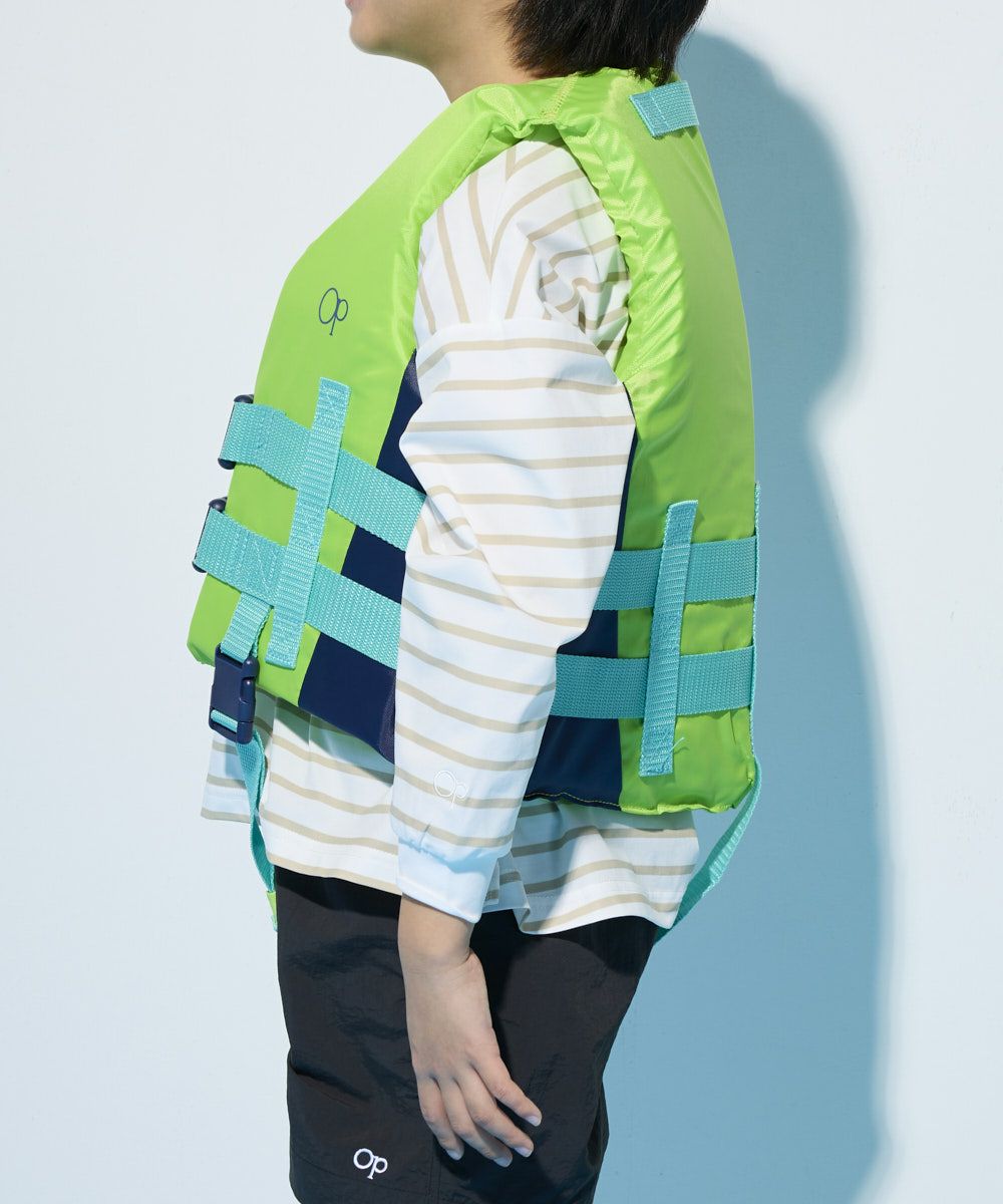 国土交通省型式承認品ライフジャケットと同様の浮力試験に合格しており、身に付けることでより快適なマリンレジャーを楽しめます。お手頃価格で動きやすさ・快適な着心地を重視した、レジャー向け子供用のフローティングベストです。OPらしいビビットなカラーリングは視認性にも優れるため、子供を水難事故から守る手助けをします。