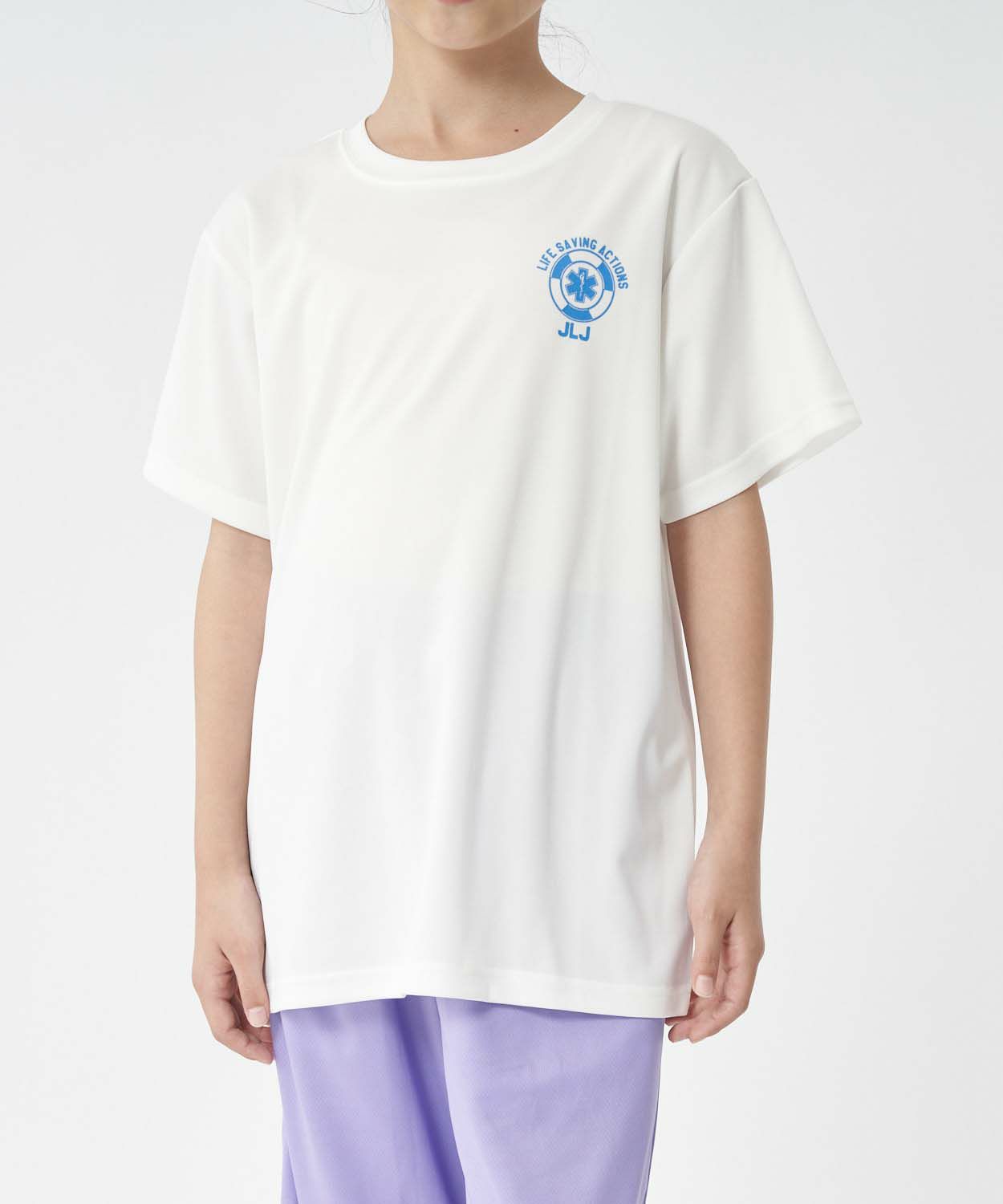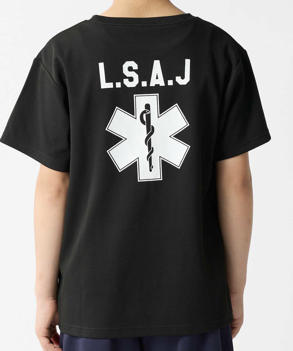 軽くてドライな風合いが夏に最適なポリエステル素材のTシャツ。背中に大きくプリントされたモチーフは救急 救命の世界的なシンボルマークです。製品の売上の一部は救急救命などに従事している団体に寄付されます。