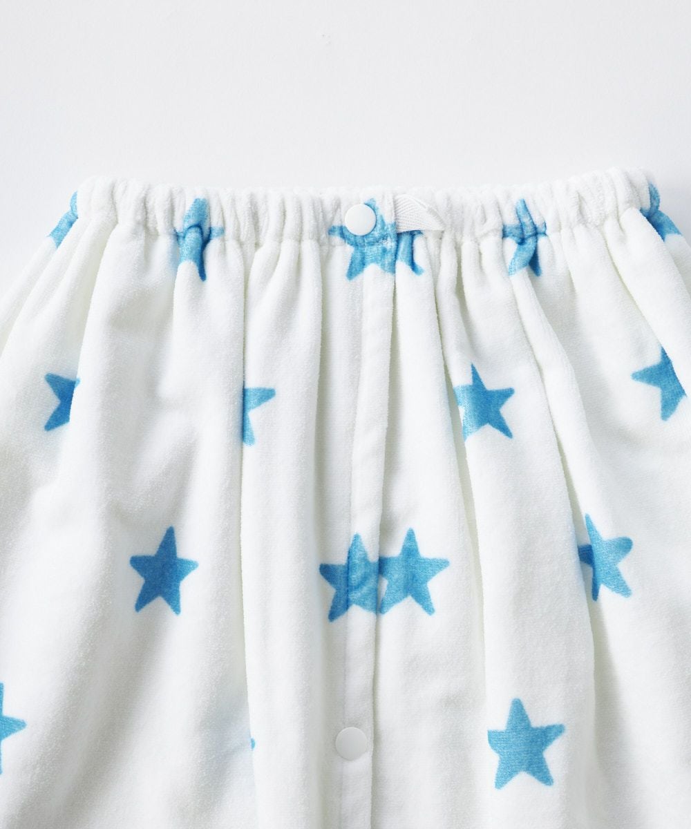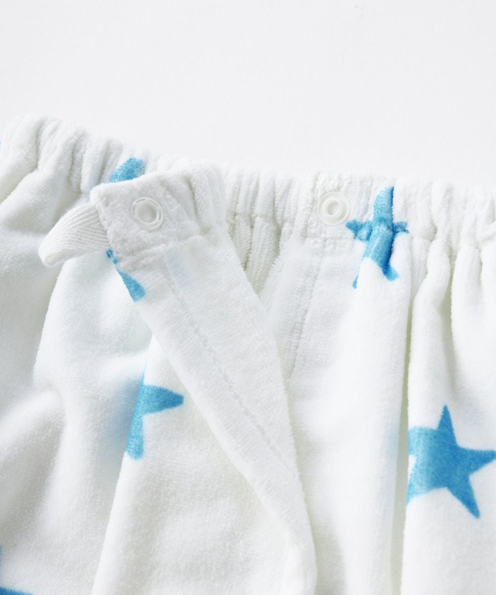 水分をしっかり吸収してくれる安心の綿素材。優しい手触りで水から上がったときの冷え防止や紫外線対策にも おすすめです。スナップ釦付きなのでタオルの中で簡単に着替えることもできます。