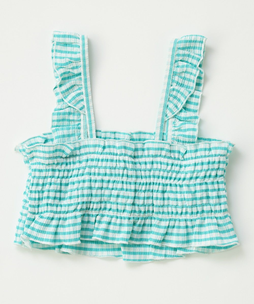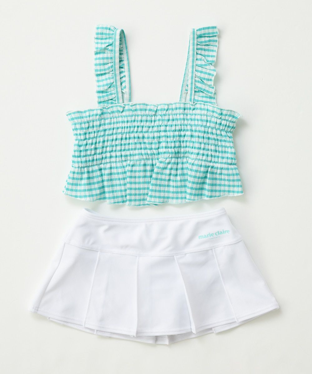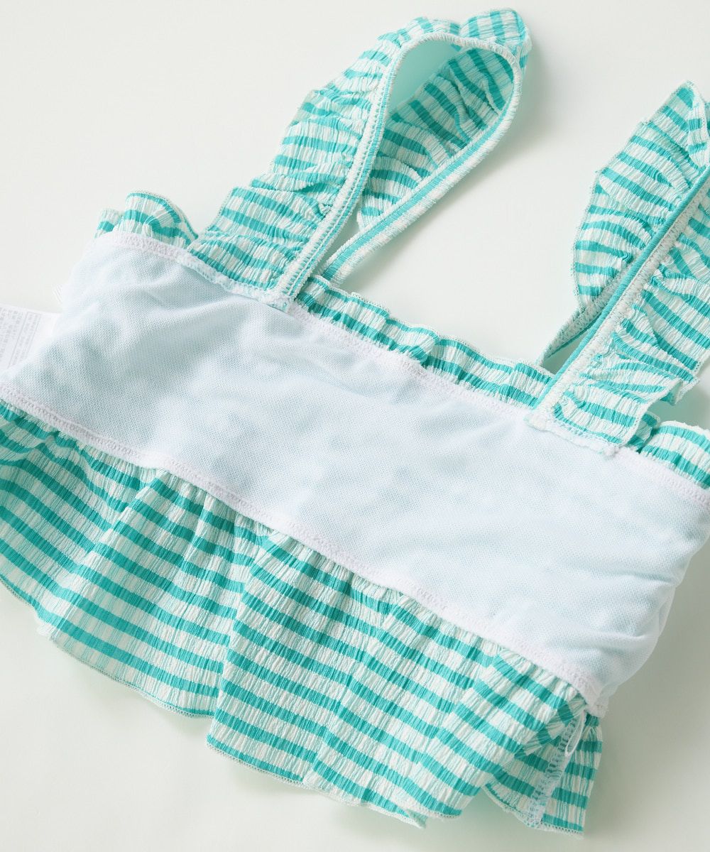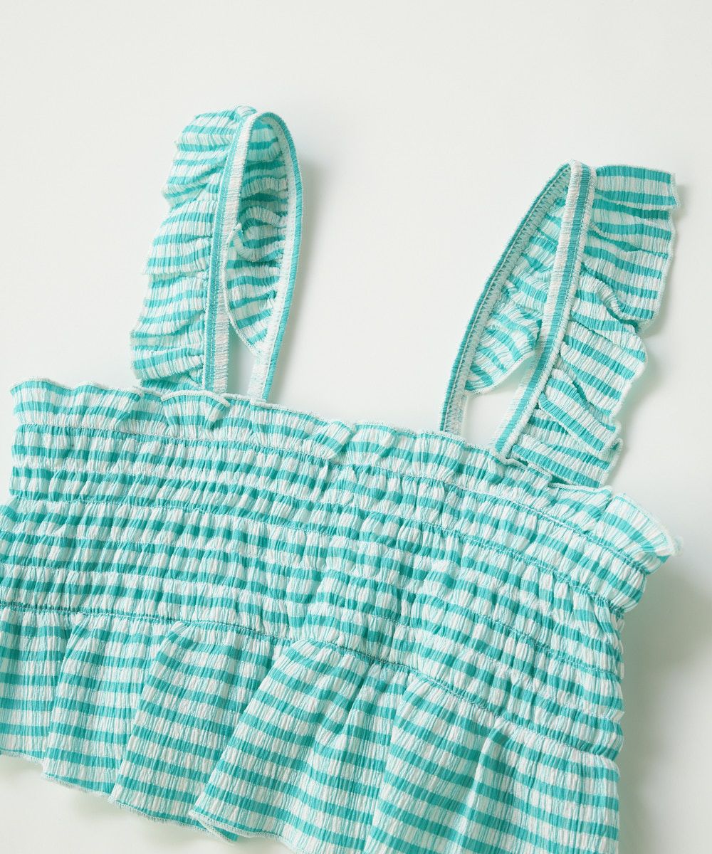 夏らしいビタミンカラーのセパレート水着です。トップスはシャーリングデザインで、チェック柄がさらにかわいい表情に!