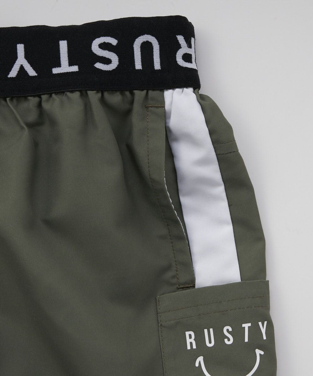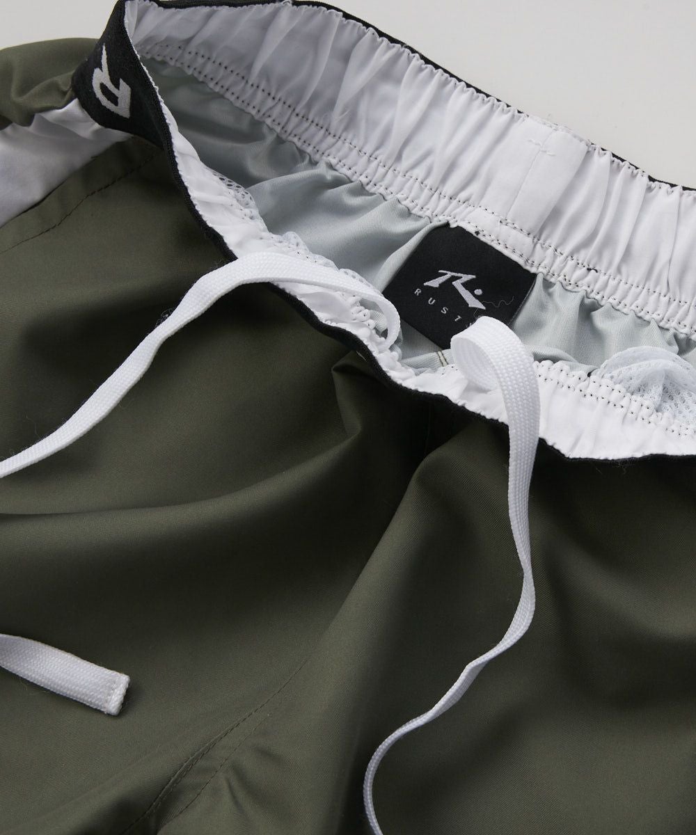 ポリエステル100%のマイクロ素材を使用。両脇のコントラストパネル配色とウエストのブランドロゴをジャガード織りしたゴムがポイント。