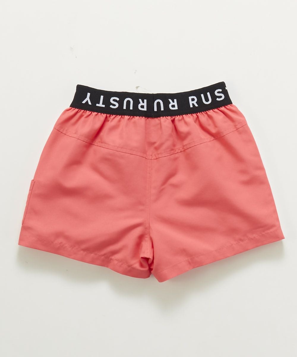 ポリエステル100%のマイクロ素材を使用。両脇のコントラストパネル配色とウエストのブランドロゴをジャガード織りしたゴムがポイント。