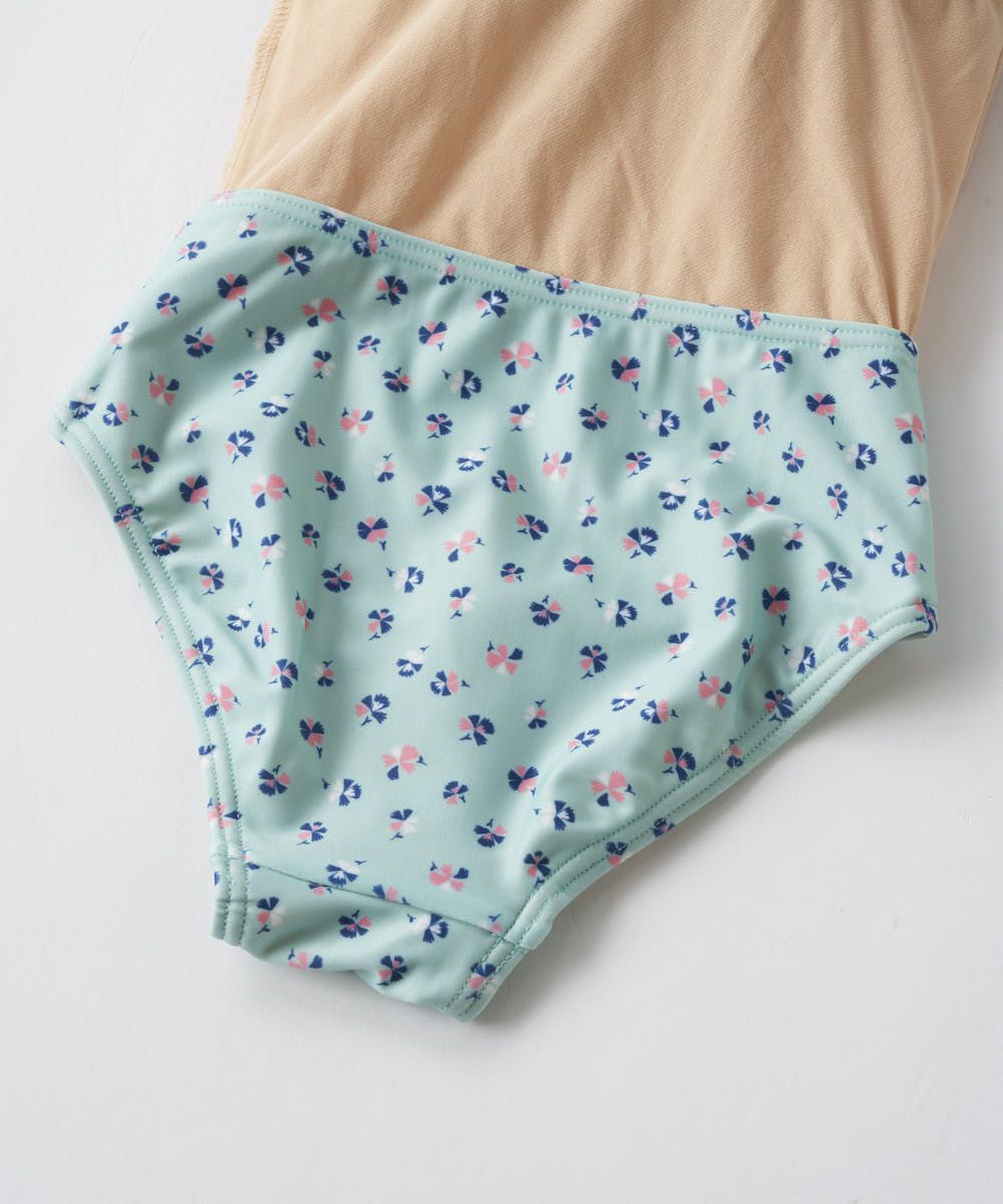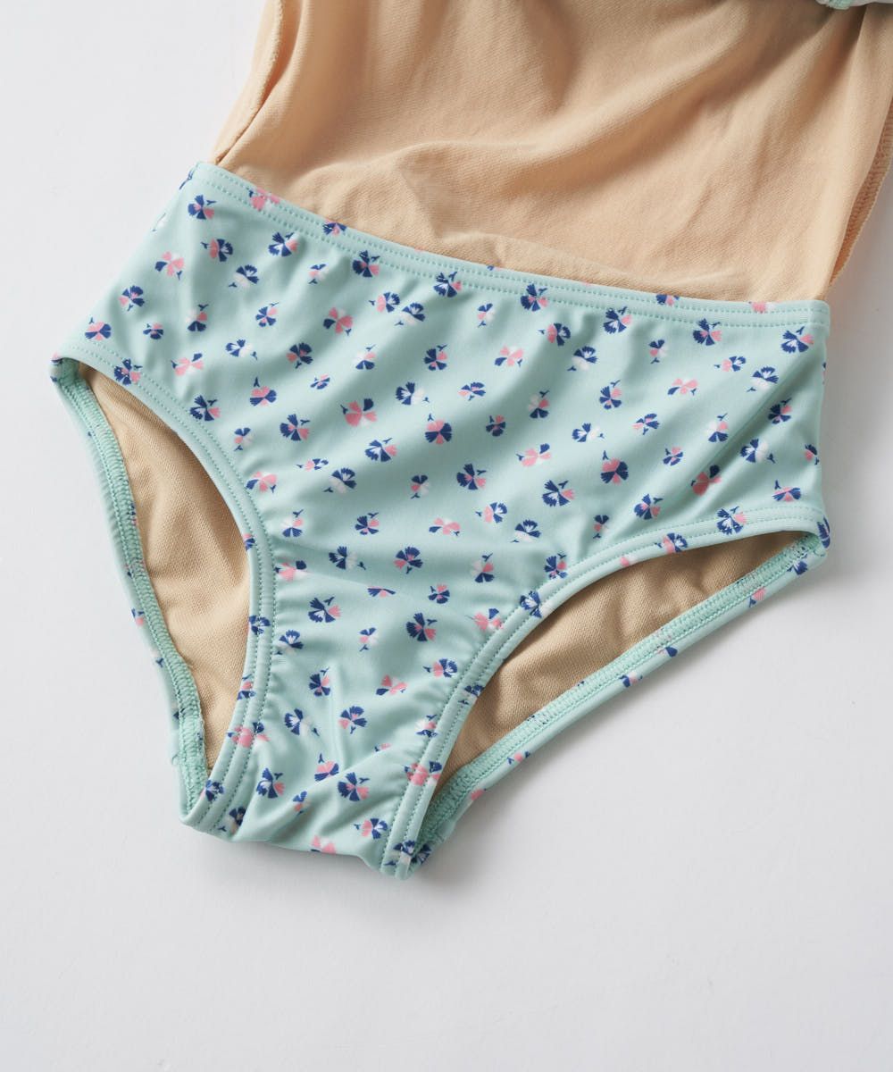 ギャザーやフリルをふんだん取り入れたガーリーなデザイン 。マリ・クレールらしい上品な花柄で、プールや海でかわいくきめましょう!ラッシュガードと同柄なのでコーディネイトもおすすめです。