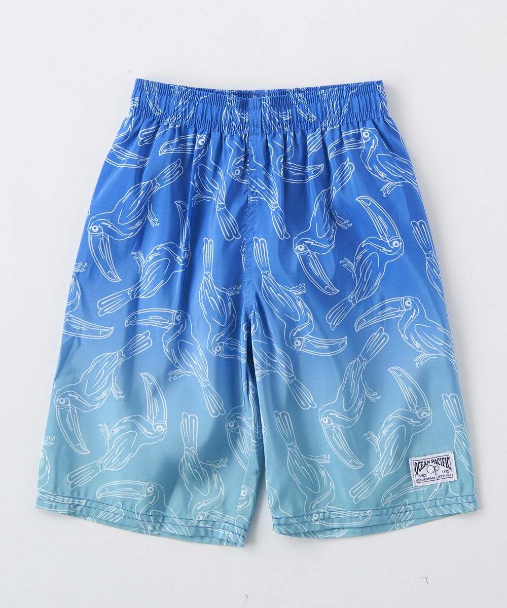プールやビーチで映える鳥総柄のグラデーションサーフパンツです。ウエストゴムで履きやすく、スピンドルで 調節も可能。メッシュインナーと一体型なのでこれ1枚でOKです。海やプール以外にアウトドアでもおすすめ 。