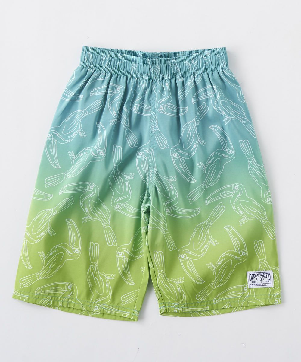 プールやビーチで映える鳥総柄のグラデーションサーフパンツです。ウエストゴムで履きやすく、スピンドルで 調節も可能。メッシュインナーと一体型なのでこれ1枚でOKです。海やプール以外にアウトドアでもおすすめ 。